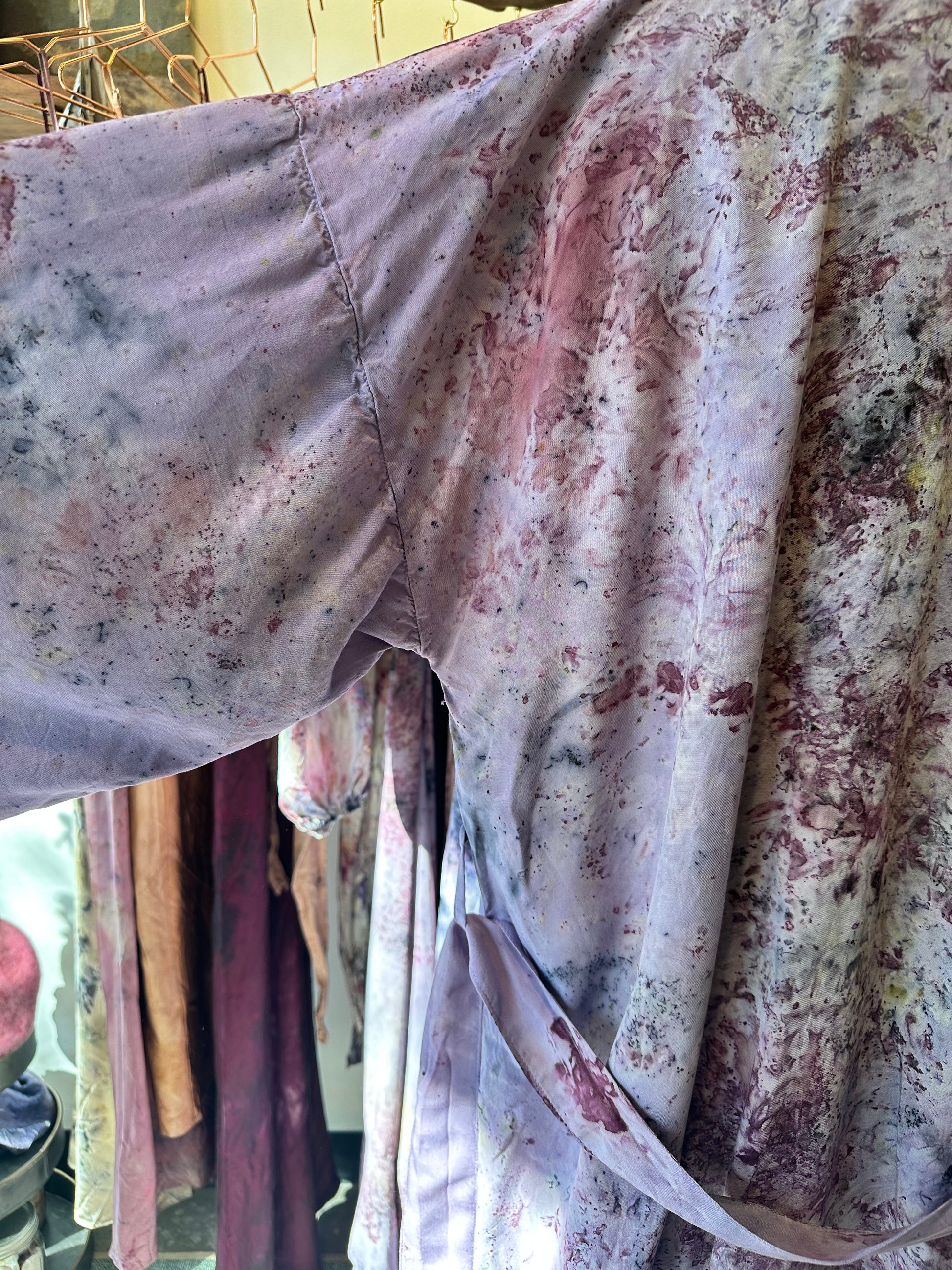 Hand dyed in between the world with love, intentions, and plant magic. Feel the plant spirits of Logwood, alkanet roots, rose, Lily, Osage, lack, and iron.