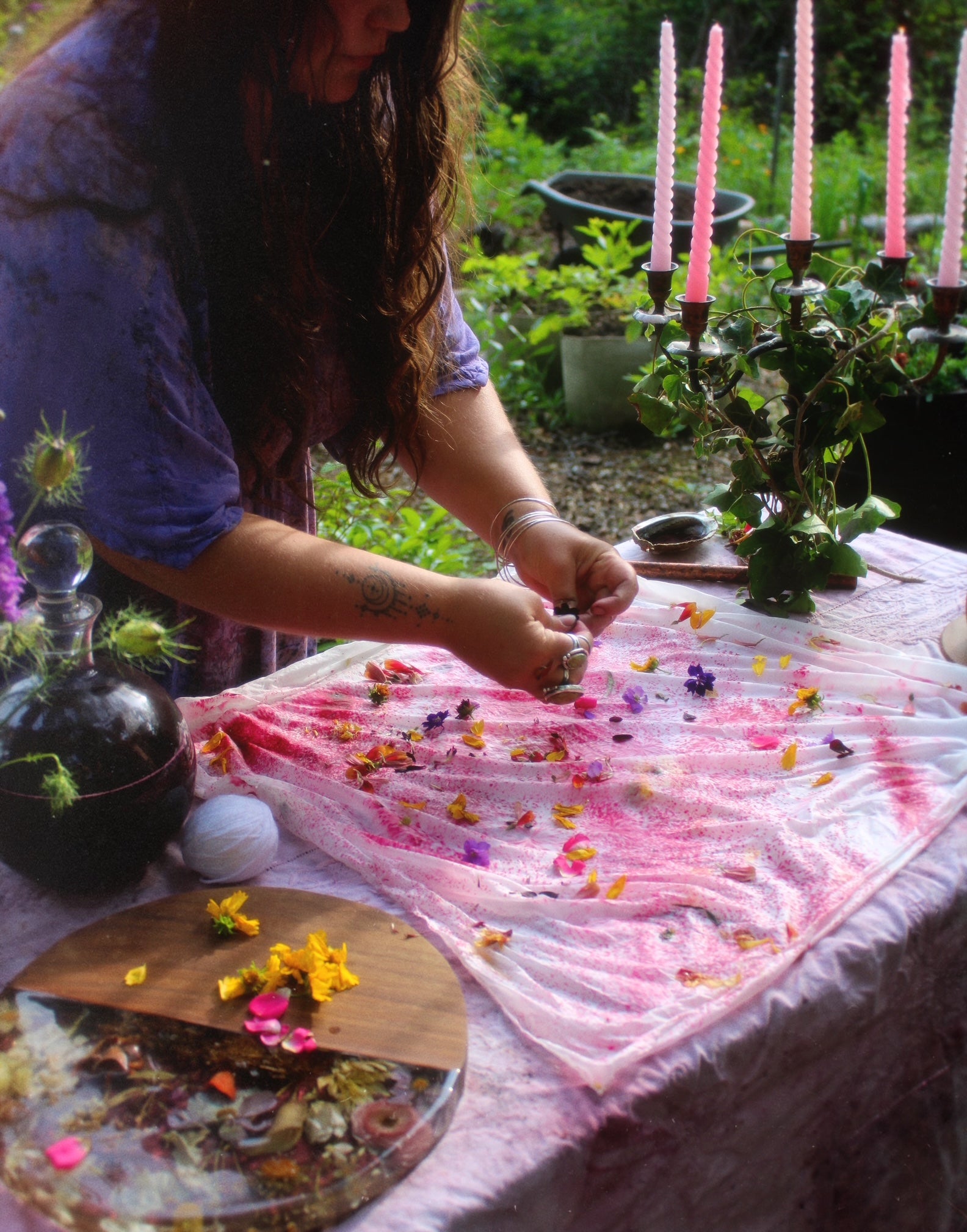 Together we will go over each medicine dye that comes from our food waste, floral harvests and what is right outside your door!! This practice is more than a craft- it is deeply rooted in regenerative textile, deepening your relationship with the magical plant world around us, and attuning yourself even further into your intuition to capture the wild color and essence- there secret language into fiber. . We will be working with food waste such as pomegranate skin that is full of tannins and the symbols of Persephone’s descent as well as floral and roots harvested amidst Appalachia to deeply root our stories into every moment.