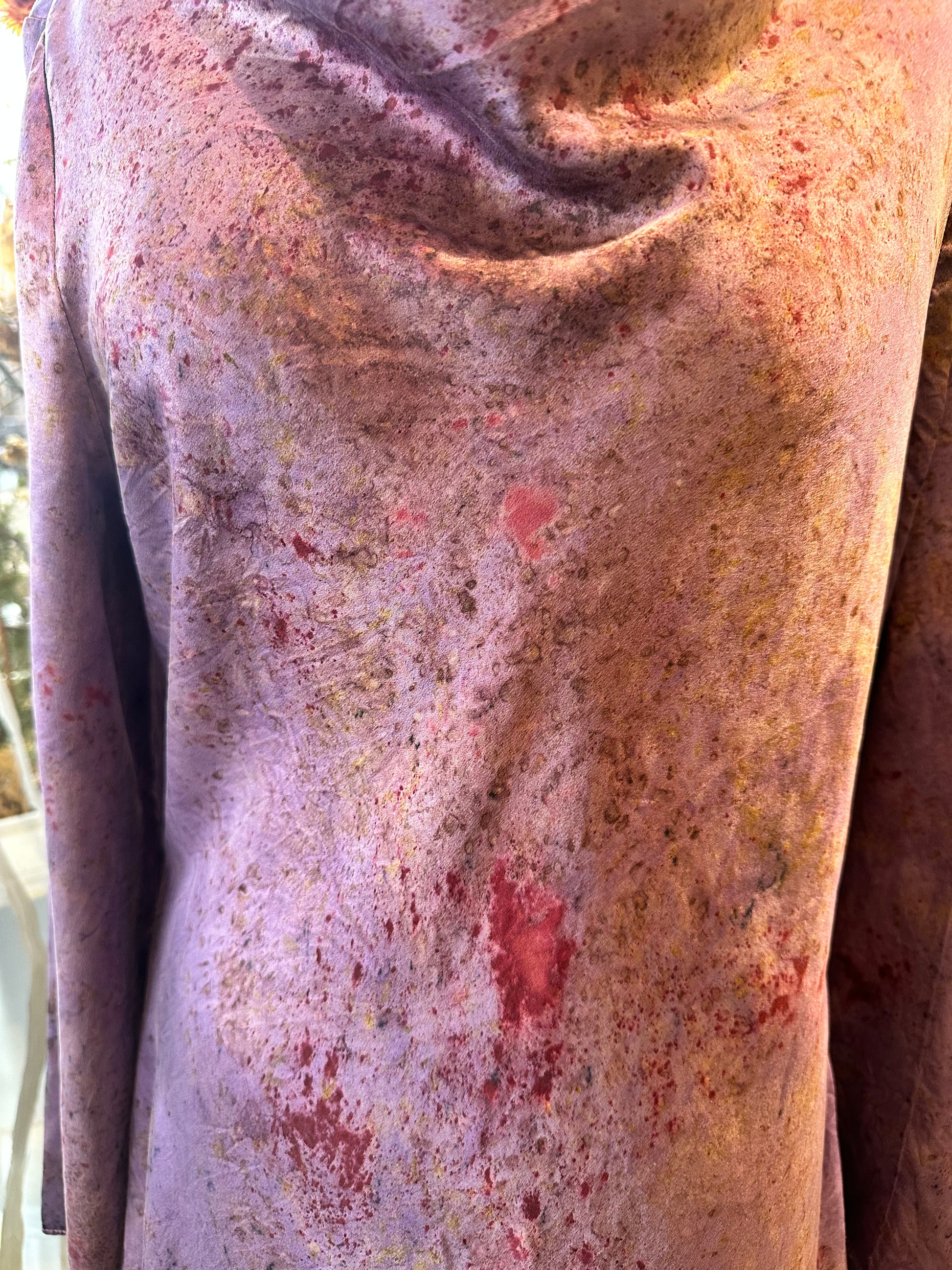 Hand dyed in between the world with love, intentions, and plant magic. Feel the plant spirits of logwood, Alkanet root, rose, cosmos, mug, Sequoia,lac & iron