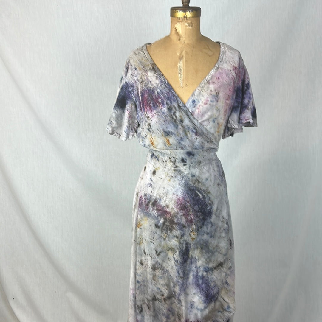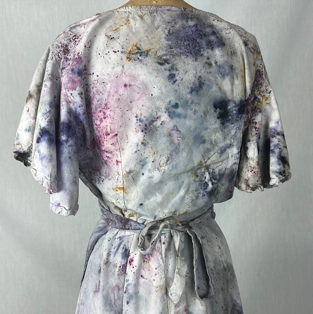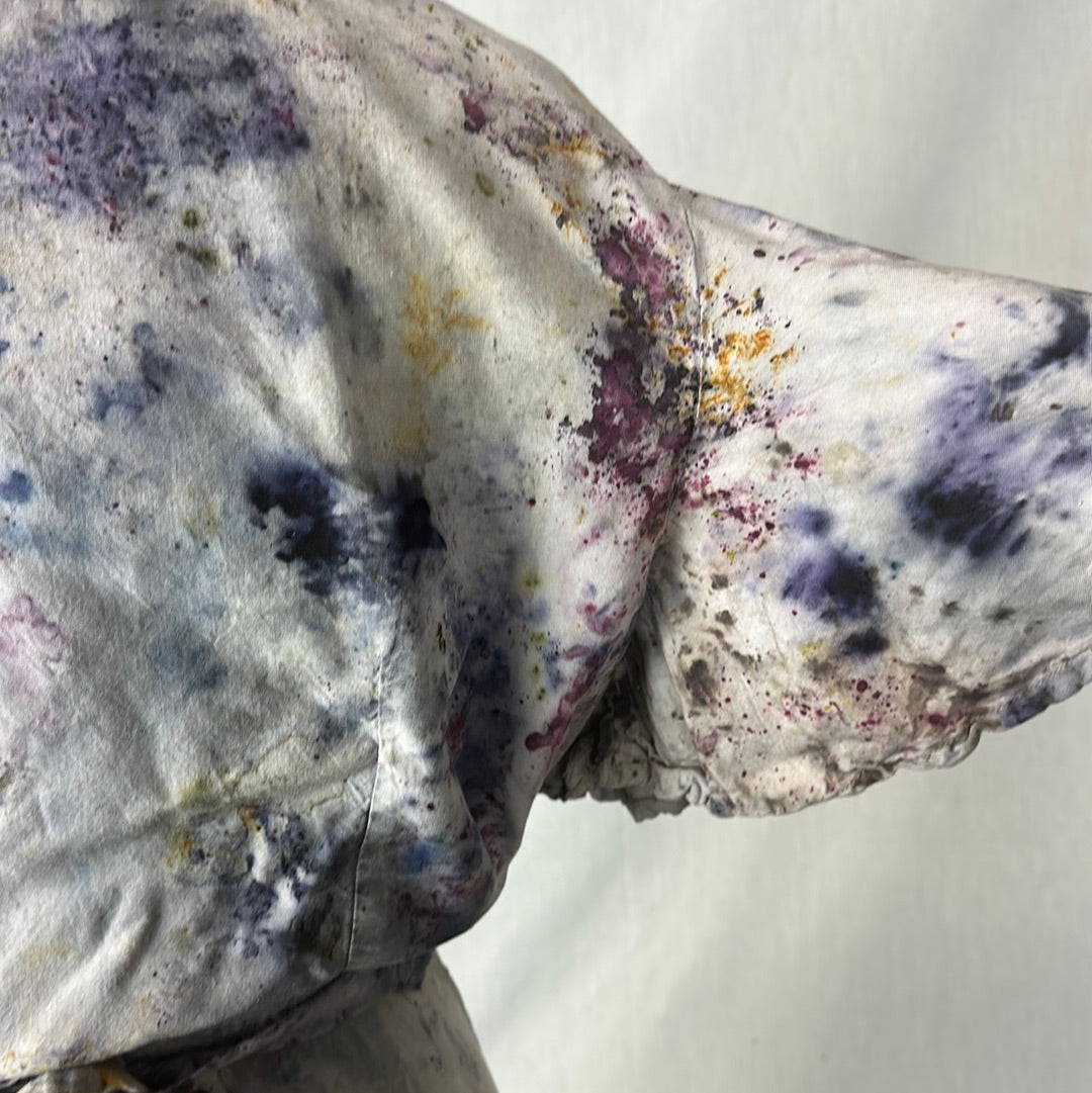 Hand-died in between the worlds with love, intentions, and plant magic. Feel the plant spirits of Rose, marigold, Dahlia, Scabosa, and iron.