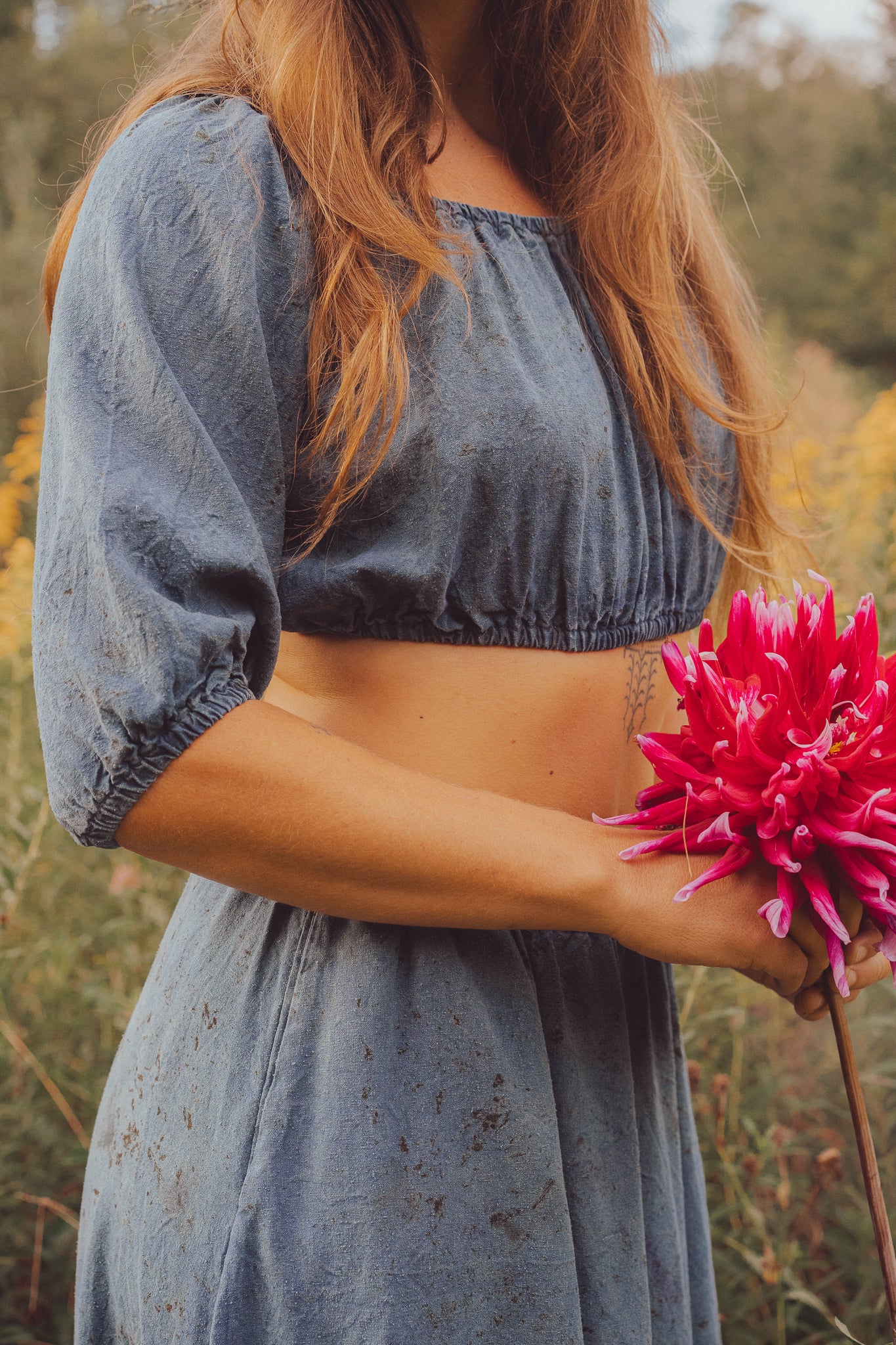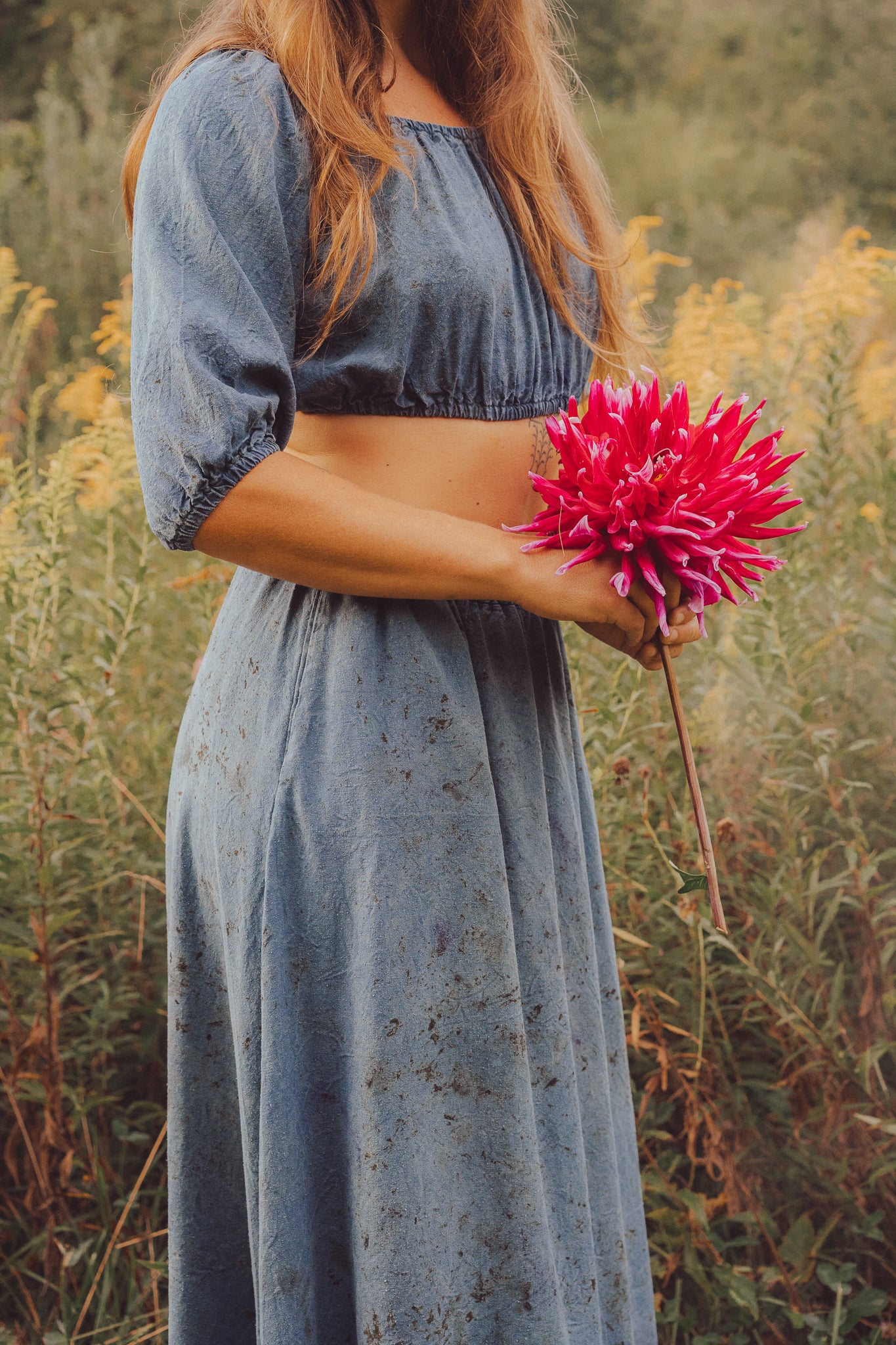 hand dyed in between the world with love, intentions, and plant magic. Feel the plant spirits of indigo, Dahlia, marigold , and iron.