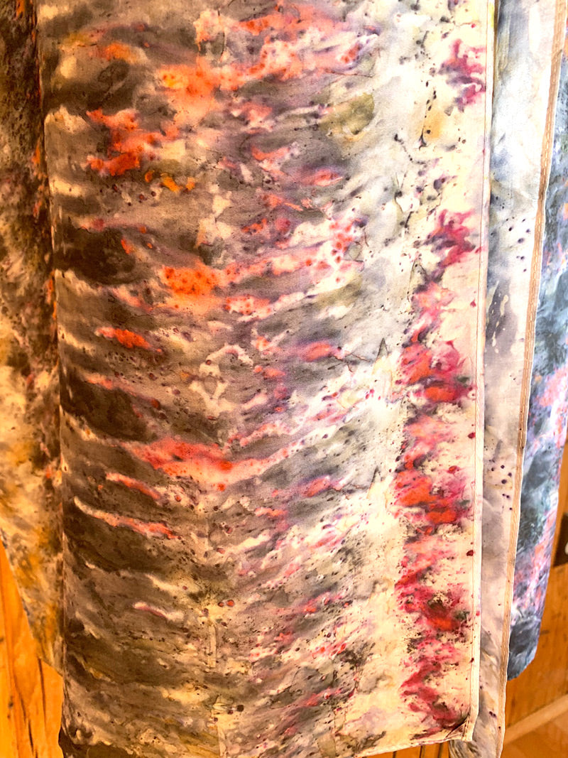 This one of a kind piece holds strong energy of earth, air, fire, and water. Find inspiring shades of red, pink, purple, green, orange, green, and blue. Bring the power of the plants everywhere you go, this piece wears wells for dressing up or with jeans. Wrap around yourself as a mediation shawl or work with in ceremony. The options are endless for these one of a kind pieces.
