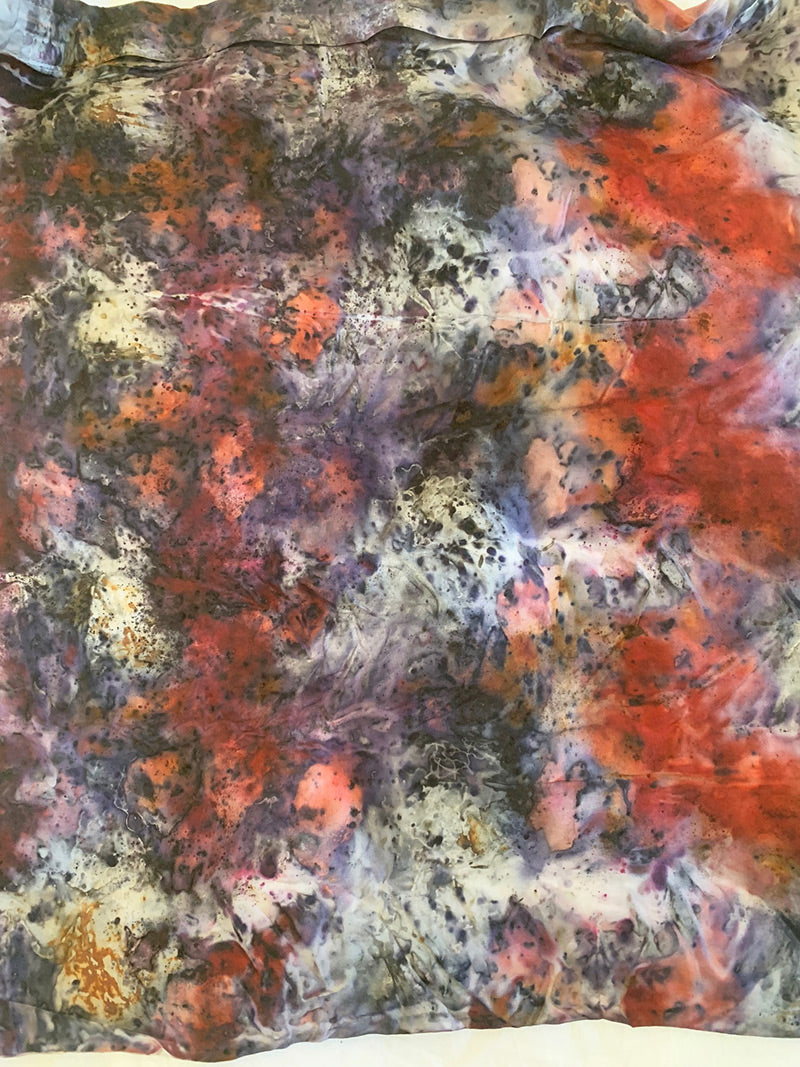 This plant infused silk throw pillow set of 2 is INCREDIBLY BEAUTIFUL. Zipper closure. Hand dyed in-betweens the worlds with love and intention. Feel the plant spirits of Rose, Mugwort, Lavender, Butterfly Blue Pea, Marigold, Lac, Cochineal, and Iron.