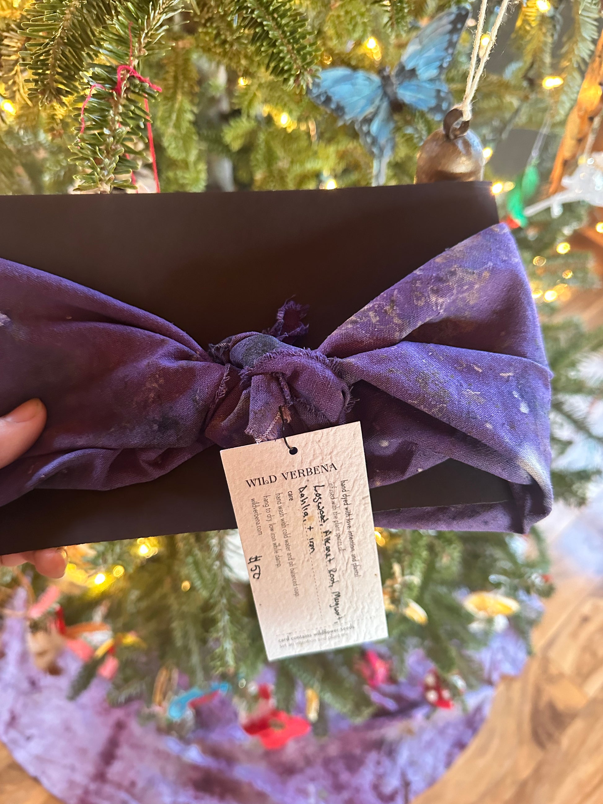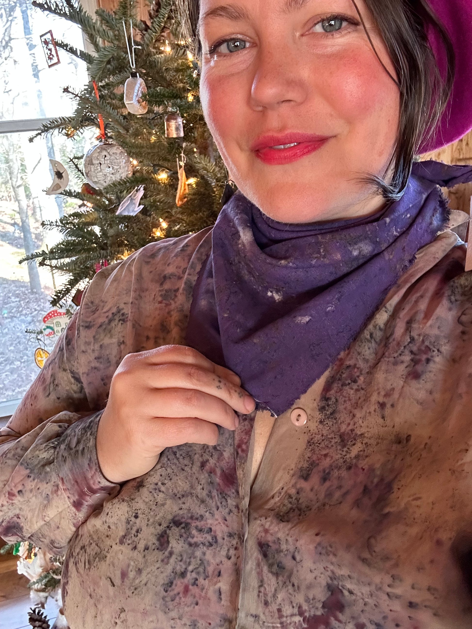 Hand dyed in between the worlds with love, intentions, and plant magic. Feel the plant spirits of logwood, alkanet root, mugwort, Dahlia, and iron.