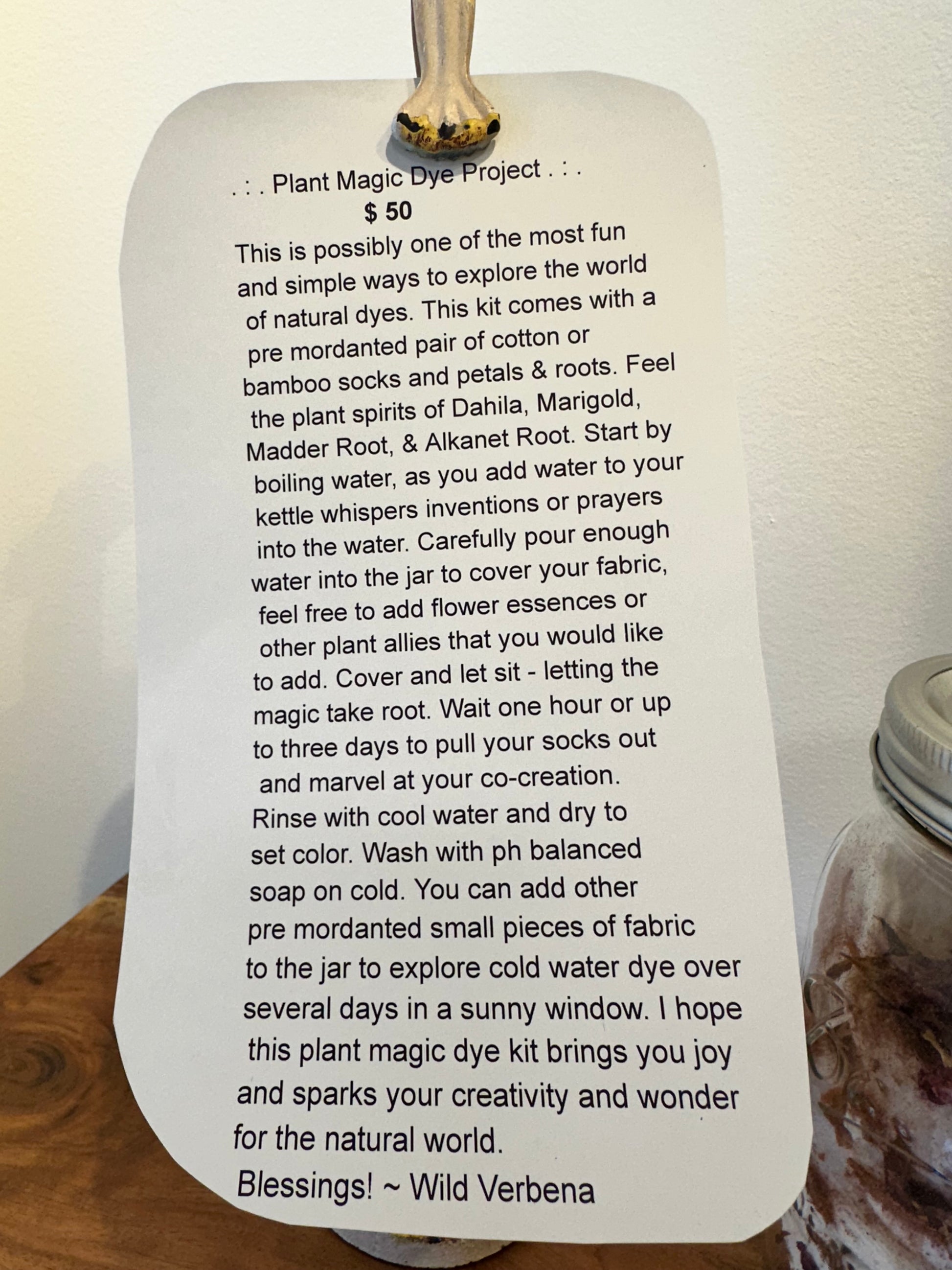 One of the most magical and simple natural dye kits! Each kit comes with a scroll describing how to work with to achieve botanical magic on cotton or bamboo socks.