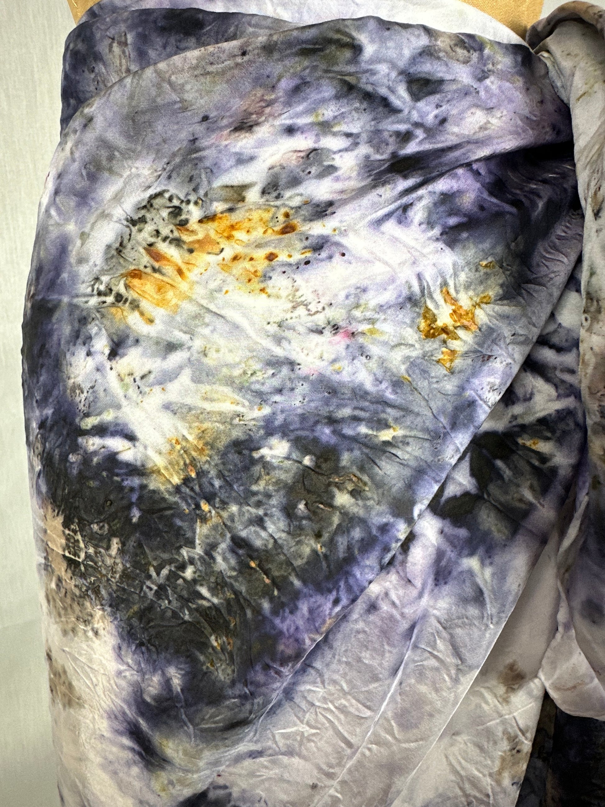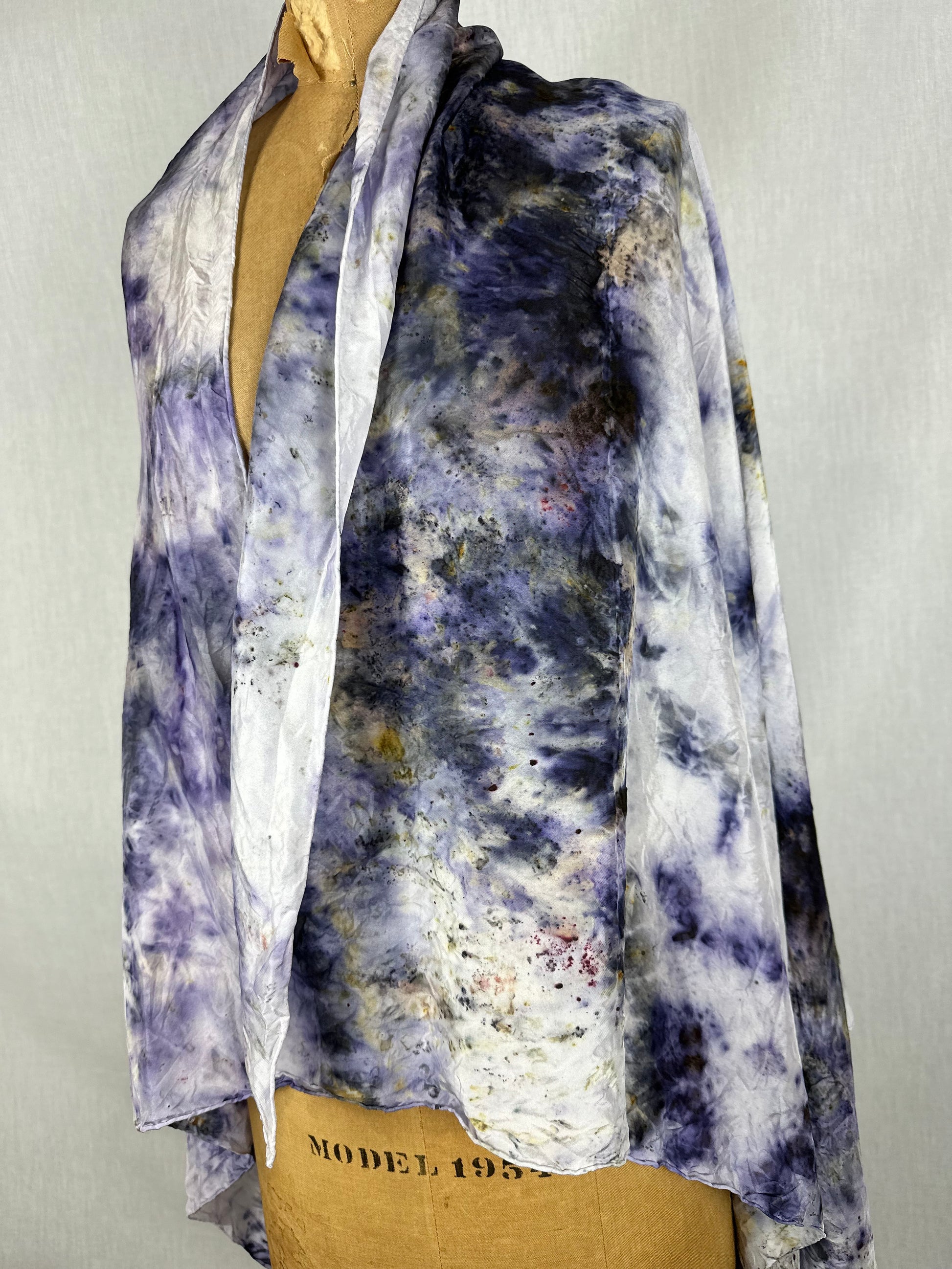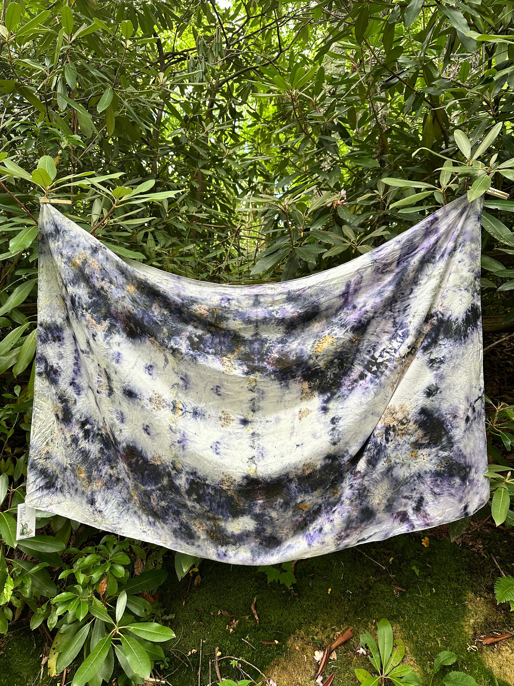 Hand dyed in between the worlds with love, intentions, and plant magic. Feel the plant spirits of alginate root, logwood, violet, mugwort, lac, and iron.