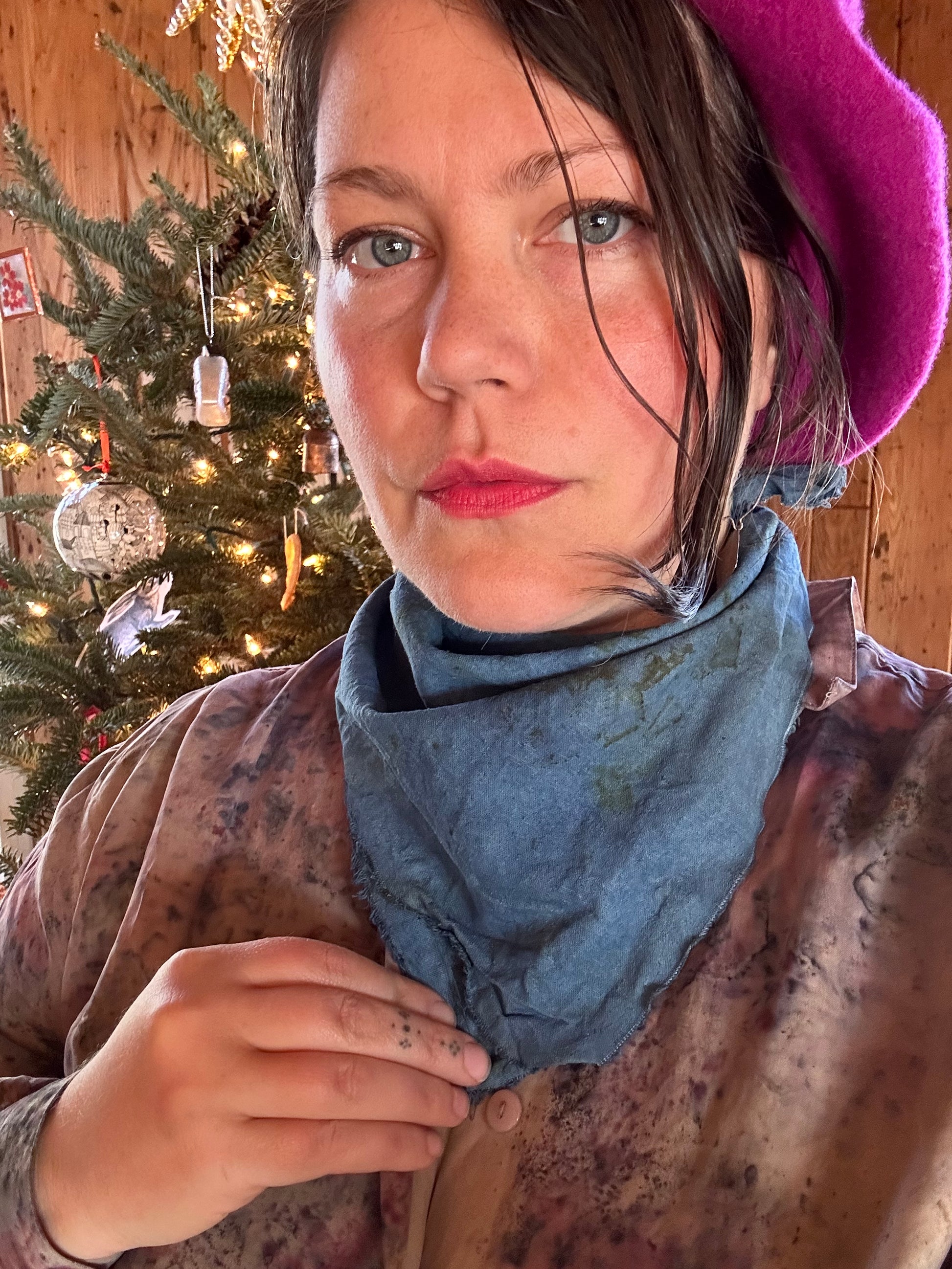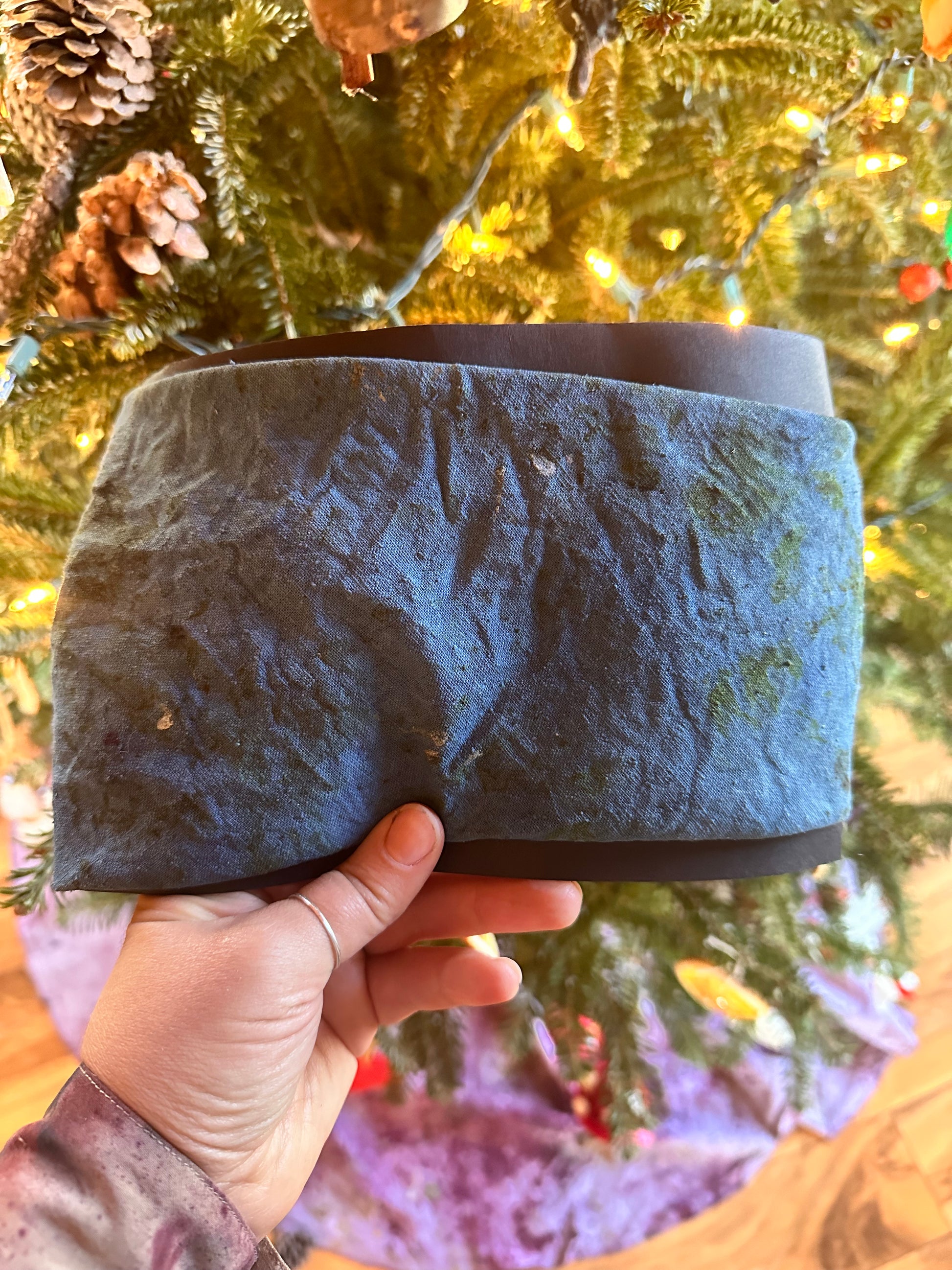 Hand dyed in between the world with love, intentions, and plant magic. Feel the plant spirits of indigo, blue Lotus, marigold, and iron.