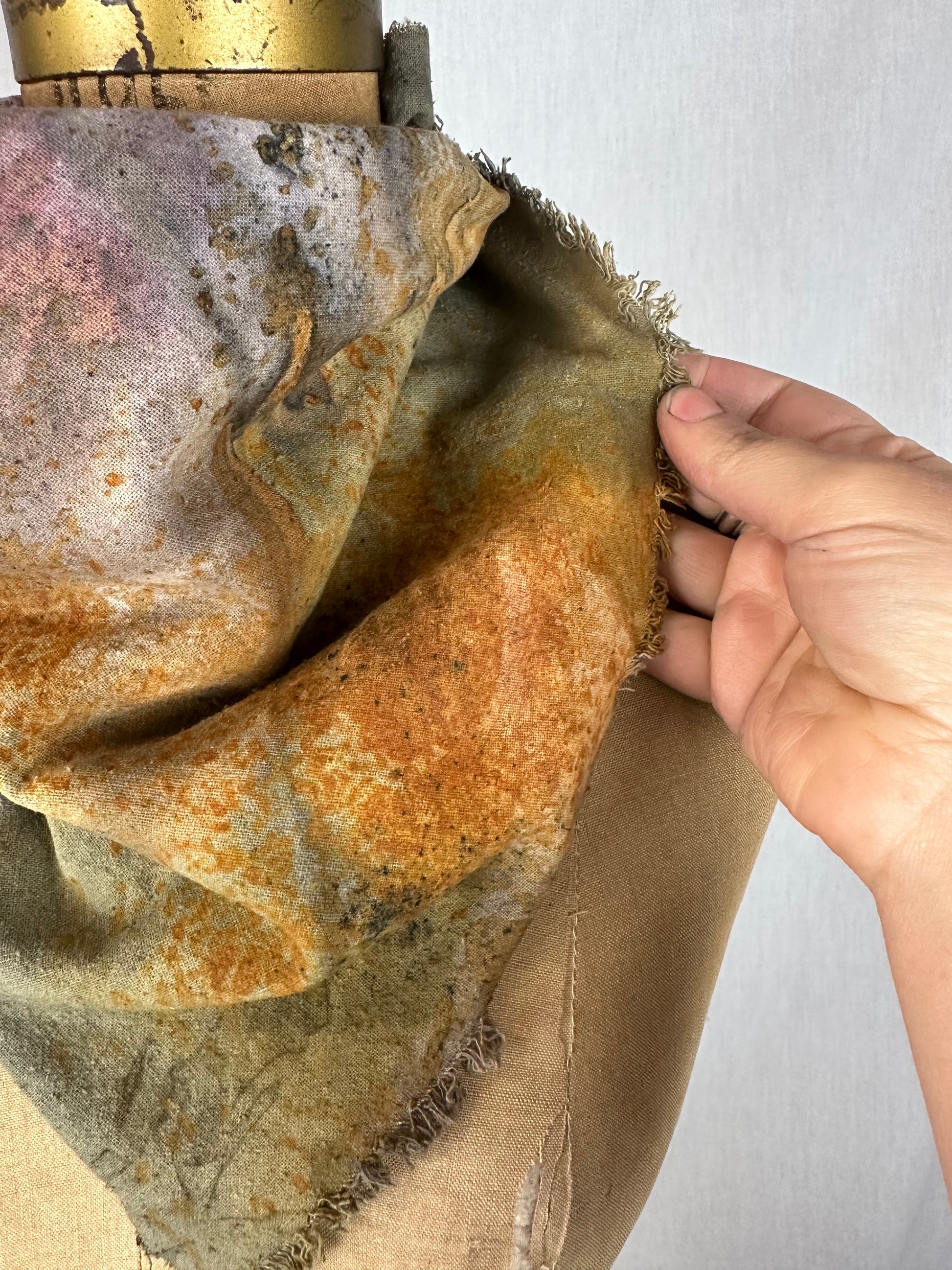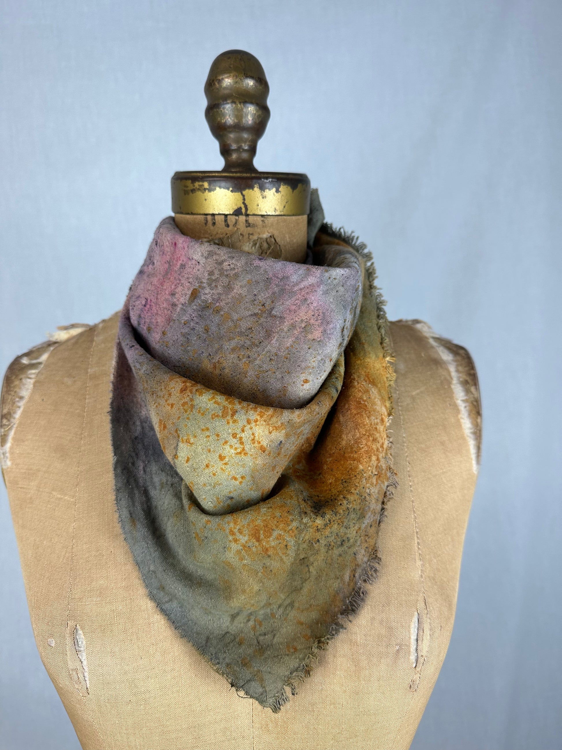 Hand dyed in-between the worlds with love, intention, and plant magic. Feel the plant spirits of rose, avocado, and ph modifiers. Anointed with Bay Laurel to clean throat chakra.