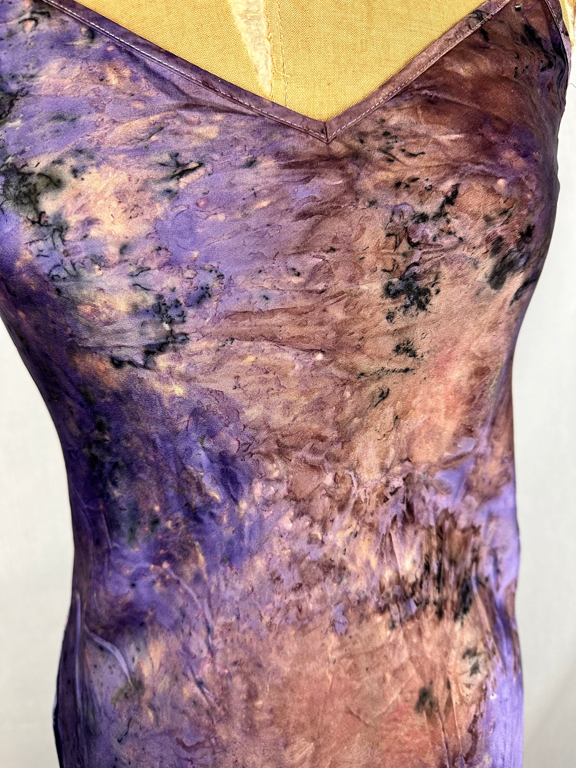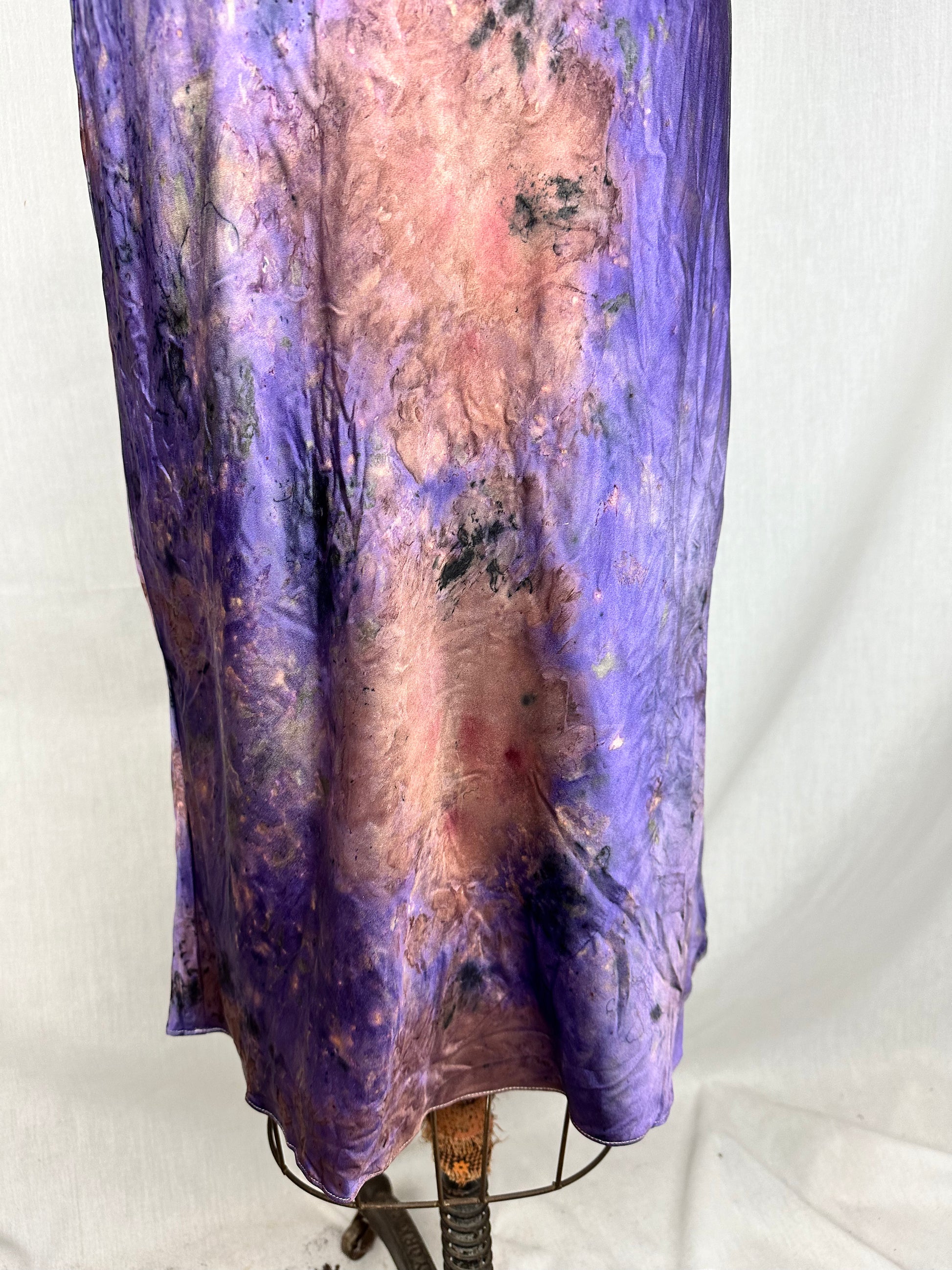 Wildly, gorgeous, one of a kind silk bias, cut dress. Hand dyed in between the worlds with love, intentions, and plant magic. Feel the plant spirits of Logwood, alkanet root, Peony, Dahlia, rose, Sequoia, and iron