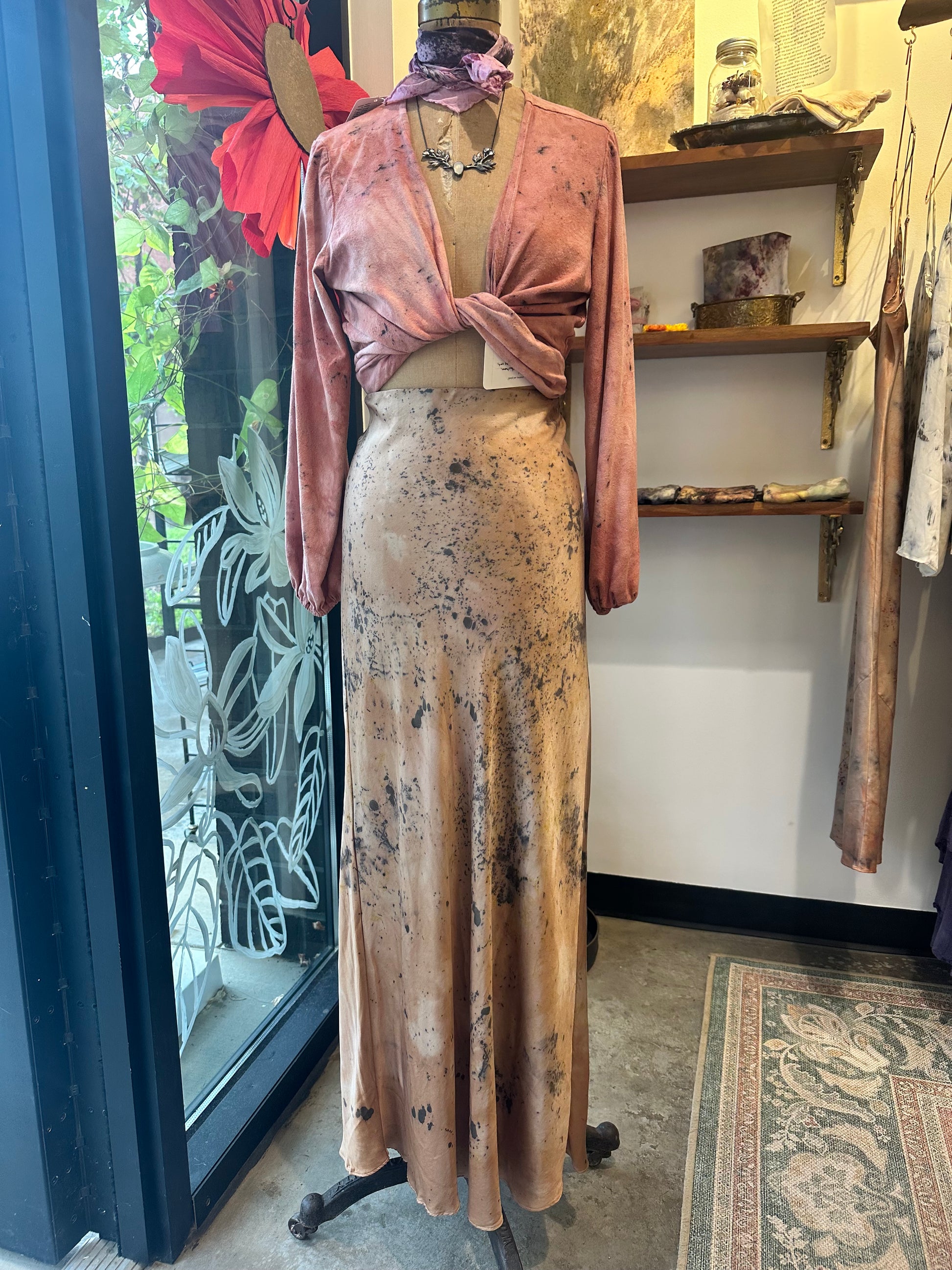 Hand dyed in between the worlds with love, intentions, and plant magic. Feel the plant spirits of cutch, rose, Marigold, oak, apple, and iron.
