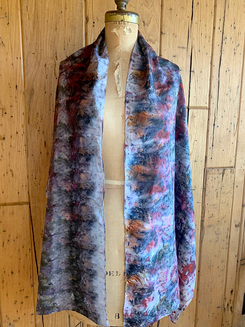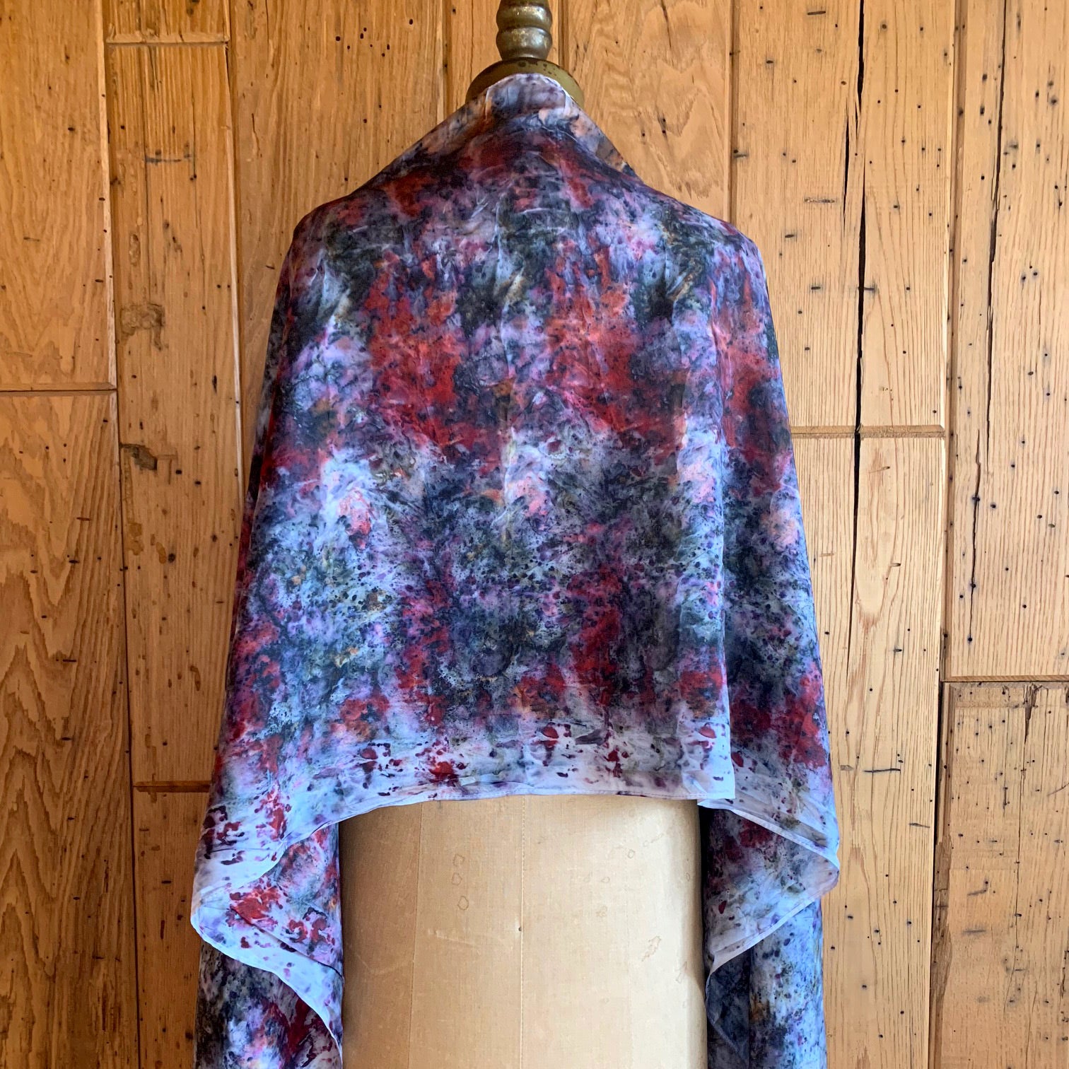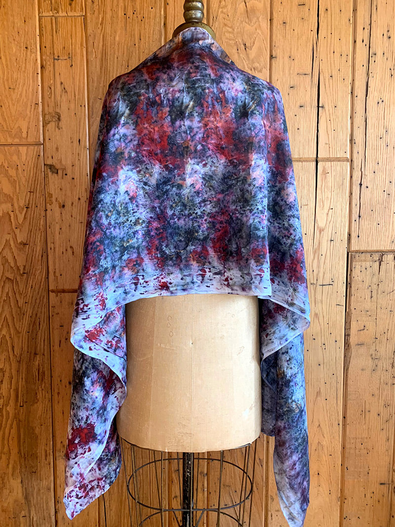 This one of a kind piece reminded me of the sacred work of tending fire. Be it our own inner passions, creativity, or love. Find inspiring colors of red, blue, pink, green, burnt orange, and purple. Bring the power of the plants everywhere you go, this piece wears wells for dressing up or with jeans. Wrap around yourself as a mediation shawl or work with in ceremony. The options are endless for these one of a kind pieces.