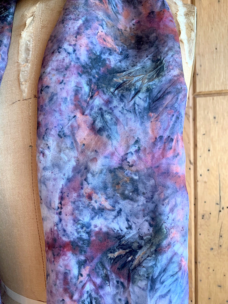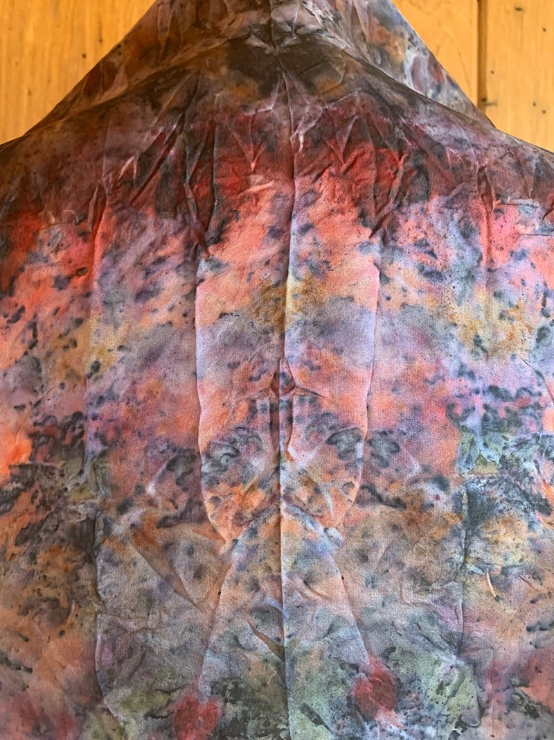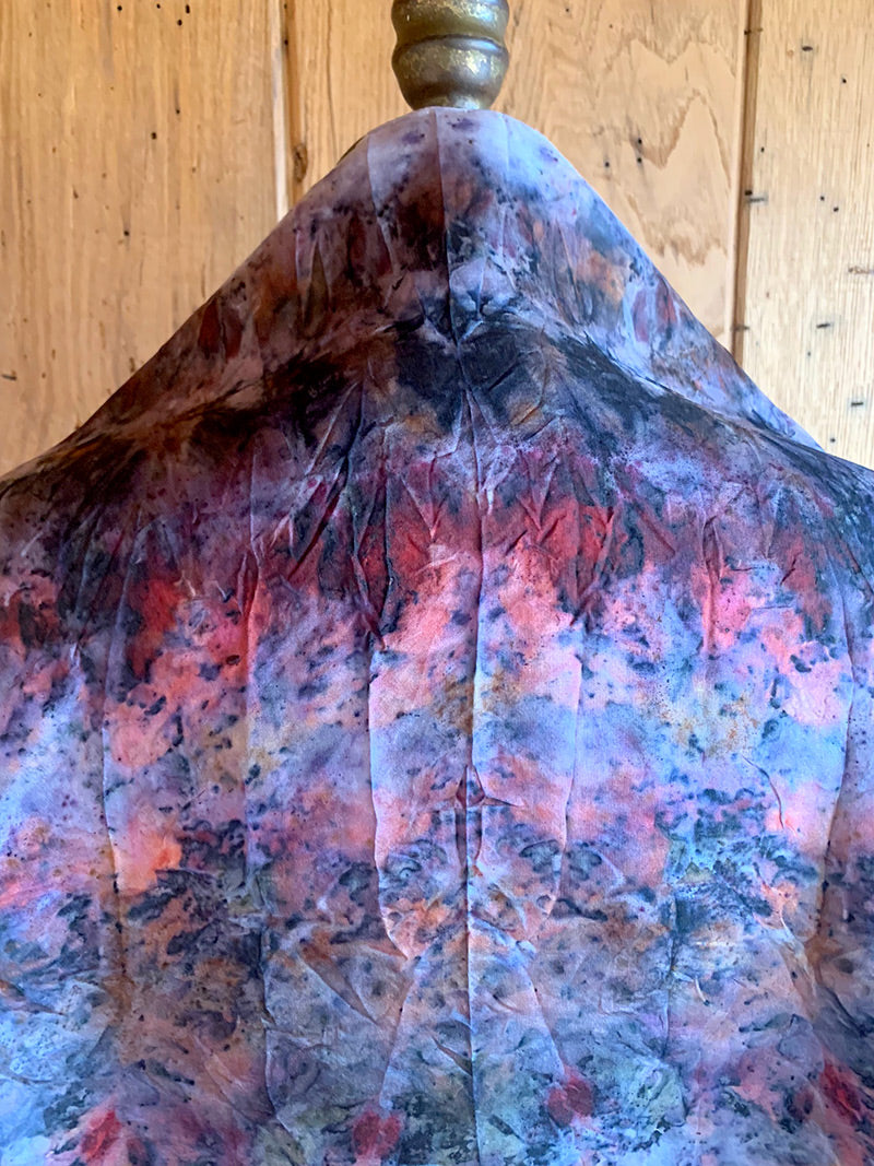 Each piece is made with love and intention in between worlds. Feel the plant spirits of Rose, dahlia, Mugwort, Sandalwood, lac, logwood, cochineal, indigo leaf, and iron.