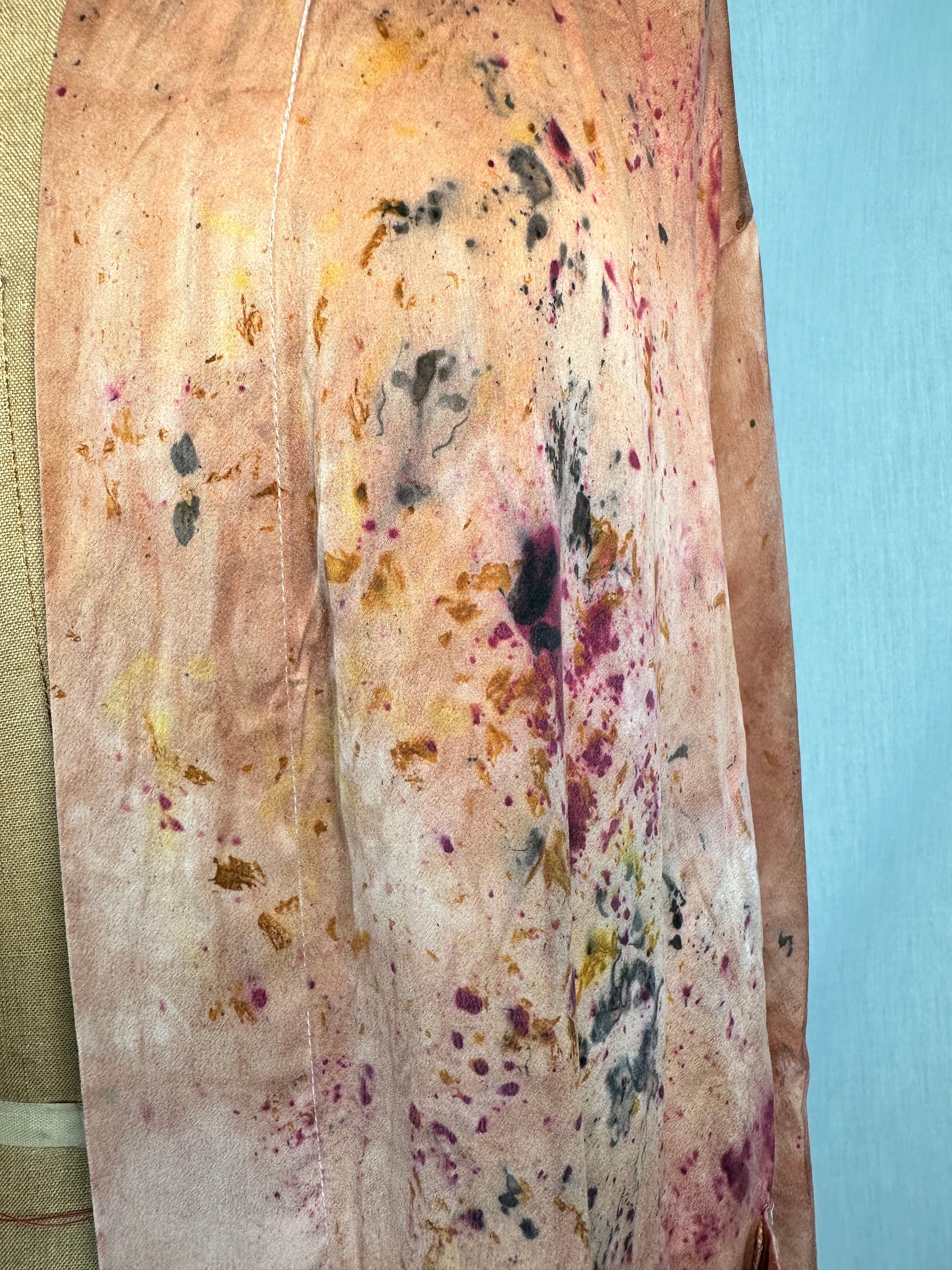 Hand dyed in between the worlds with love, intentions, and plant magic. Feel the plant spirits of cutch, rose, marigold, cosmos, mugwort, lac, and iron.