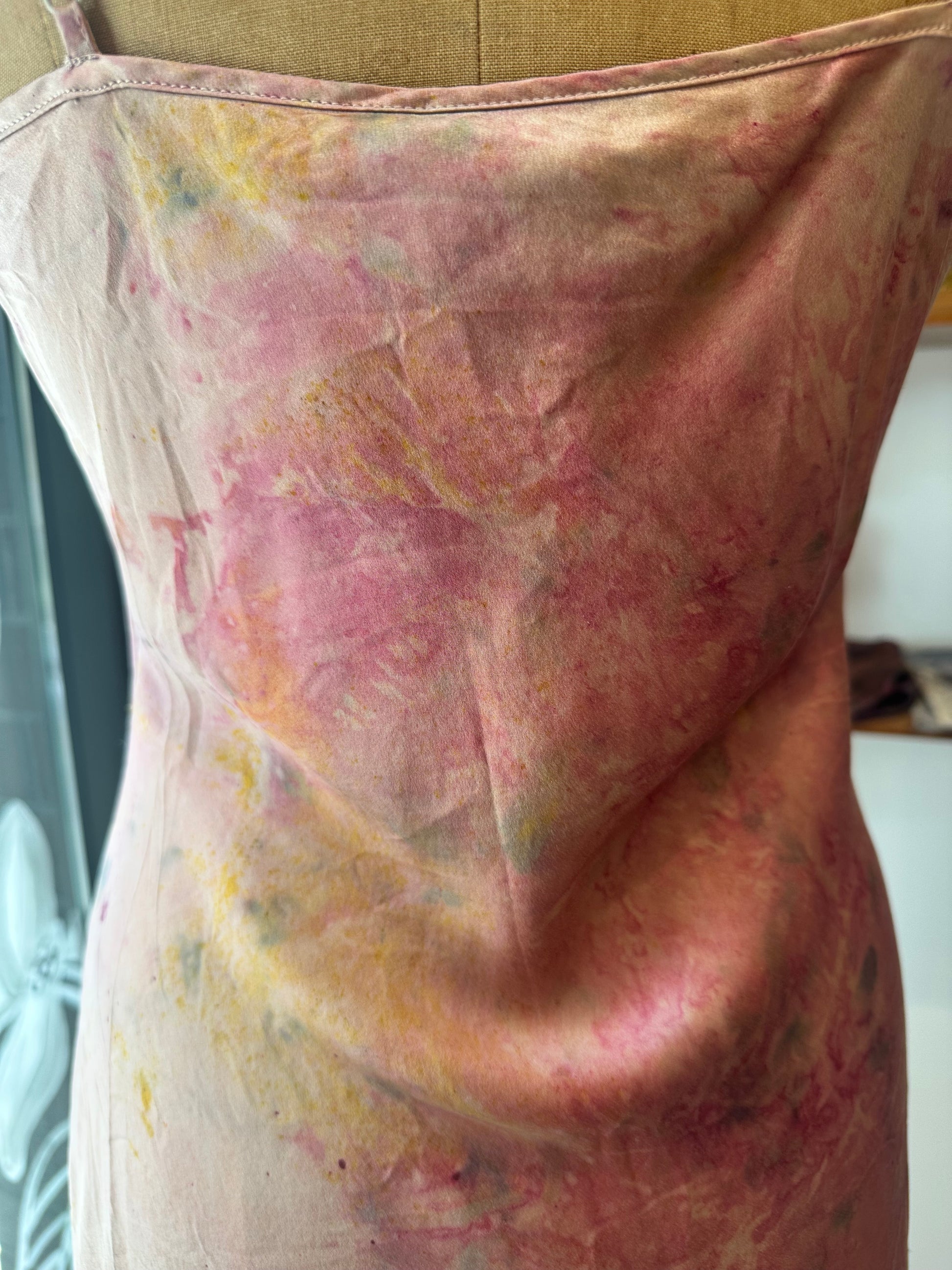 Hand dyed in between with love , intentions, and plant magic. Feel the plant spirits of rose, madder root, cosmos, blue pea, marigolds, and iron.