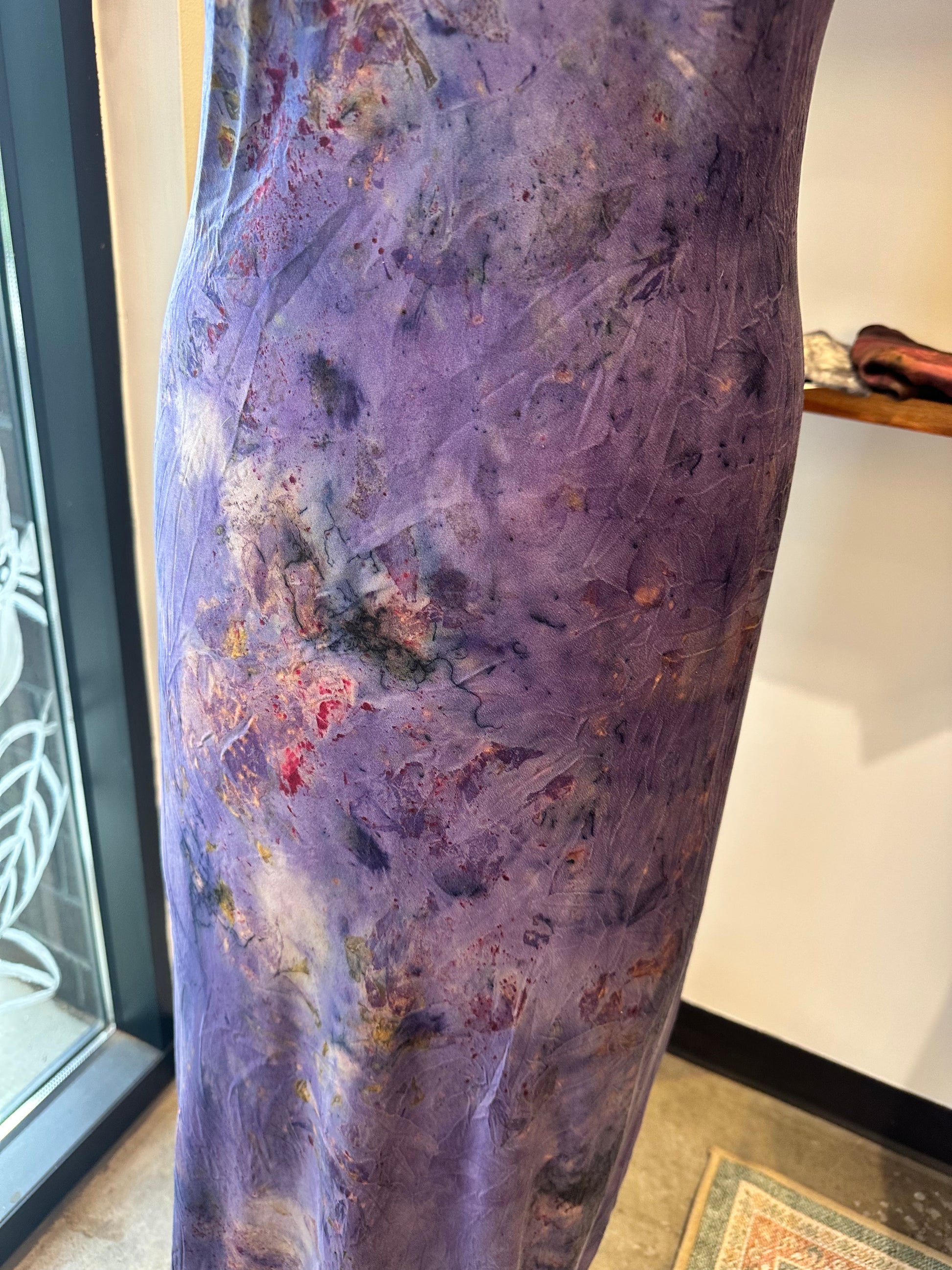 Hand dyed in between the worlds with love, intentions, and flat magic. Feel the plant spirits of Logwood, Alkanet root, rose, Dalia, mug, cosmos, Yarrow,Lac, & iron