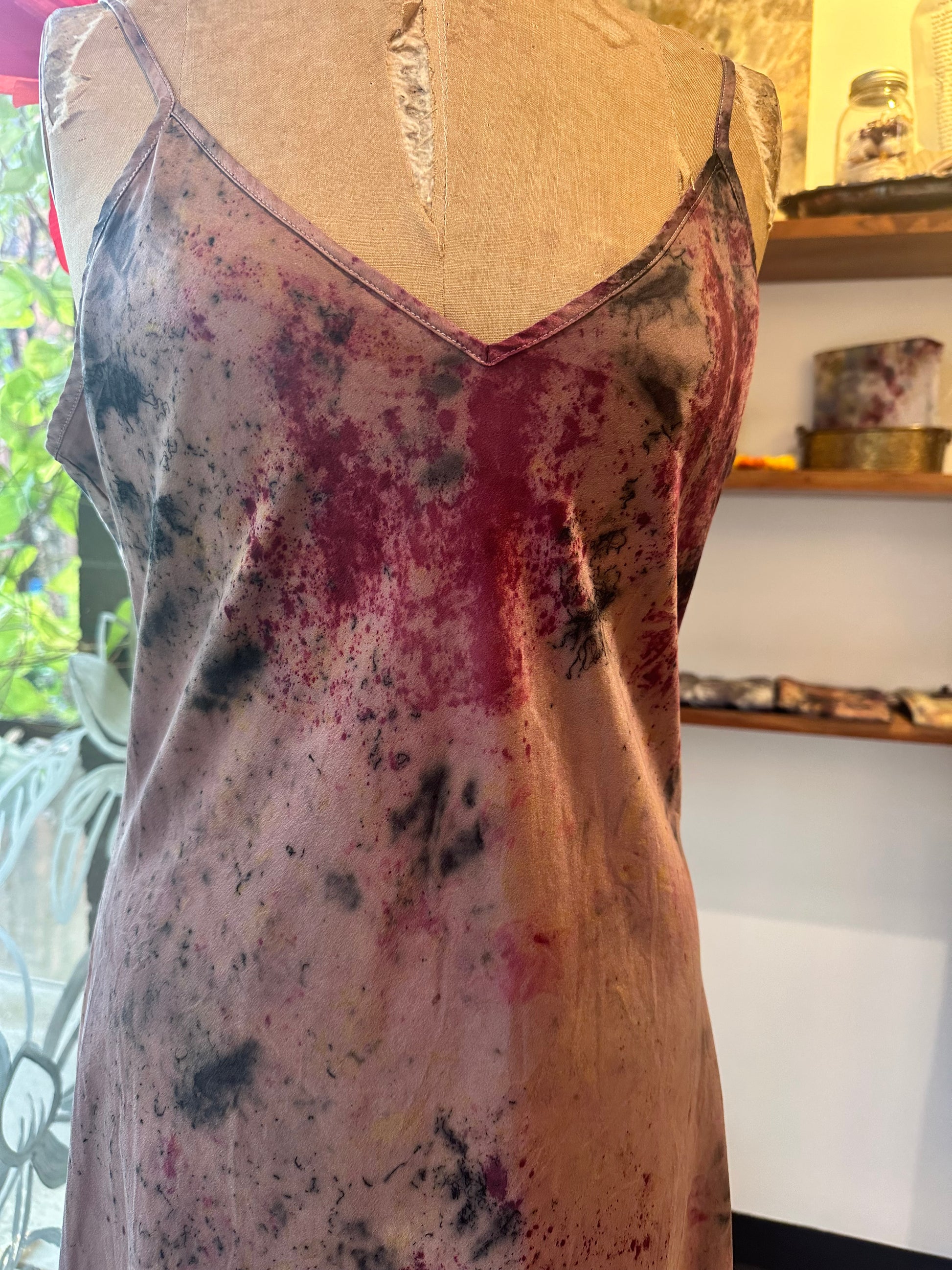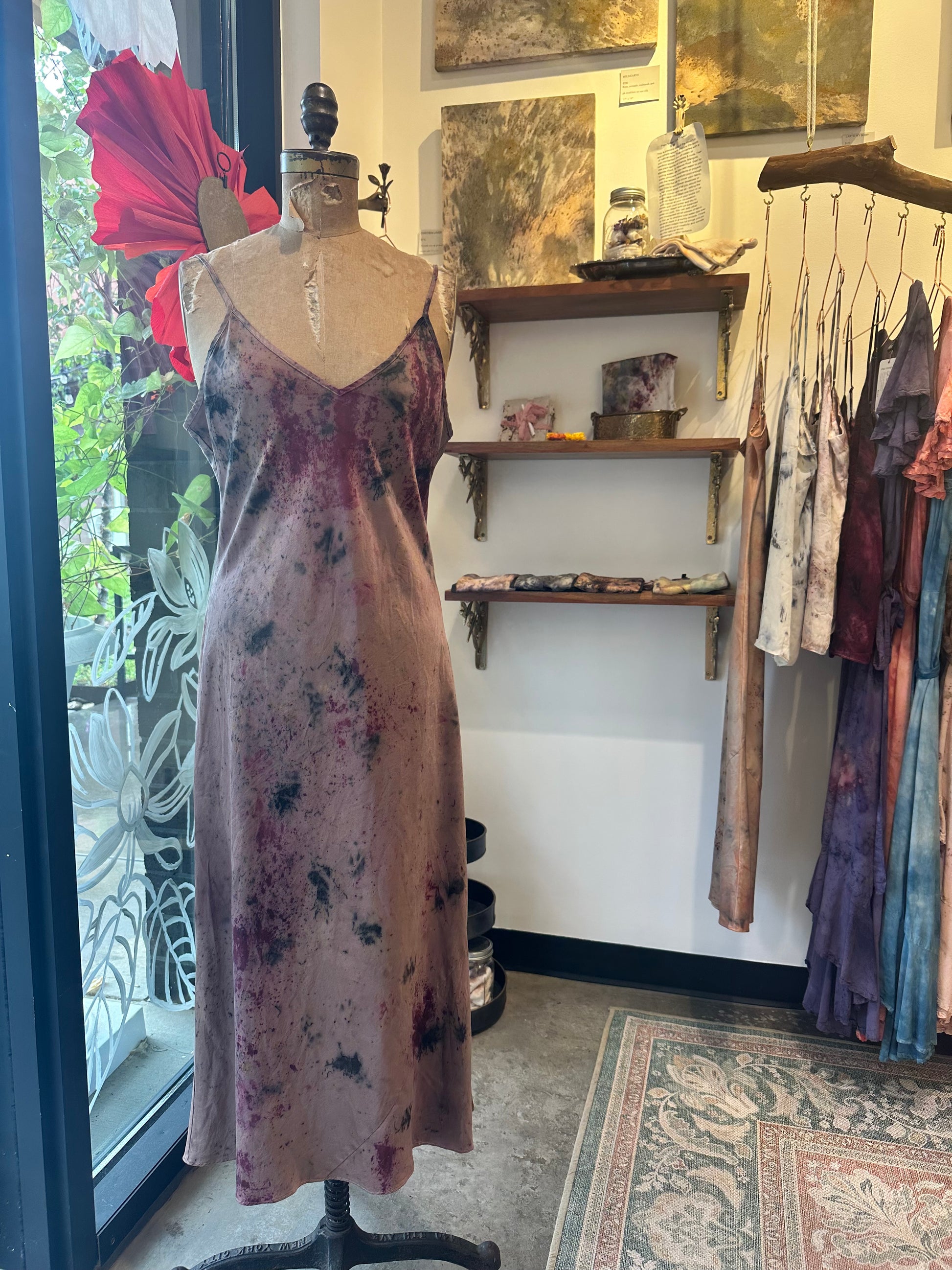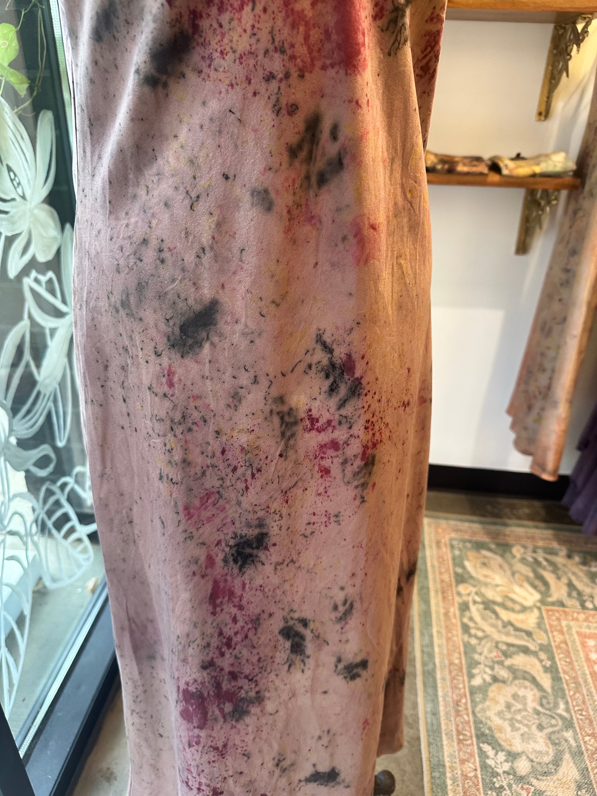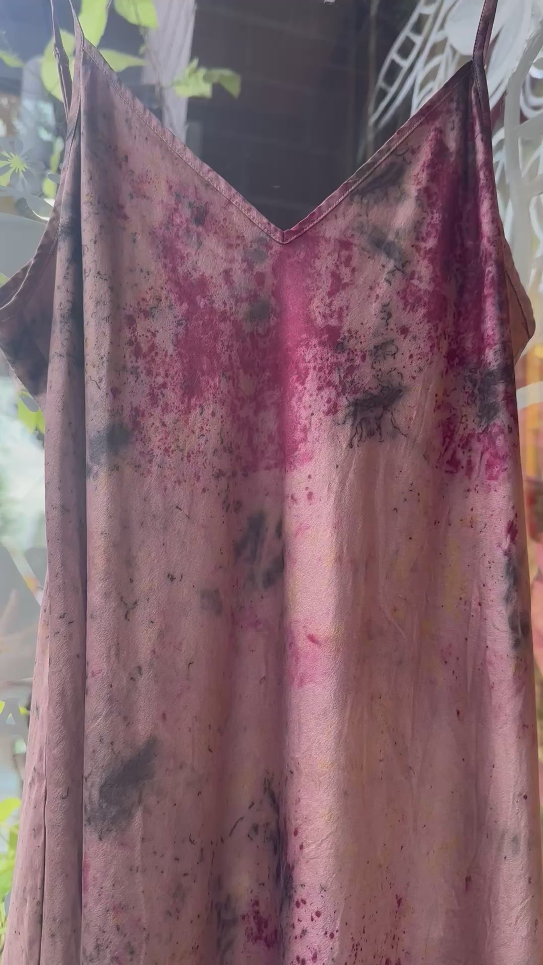 Hand dyed in between the world’s love, intentions, and plant magic. Feel the plant spirits of sequoia, rose, cosmos, sweet Annie, mugwort, lac, and iron.
