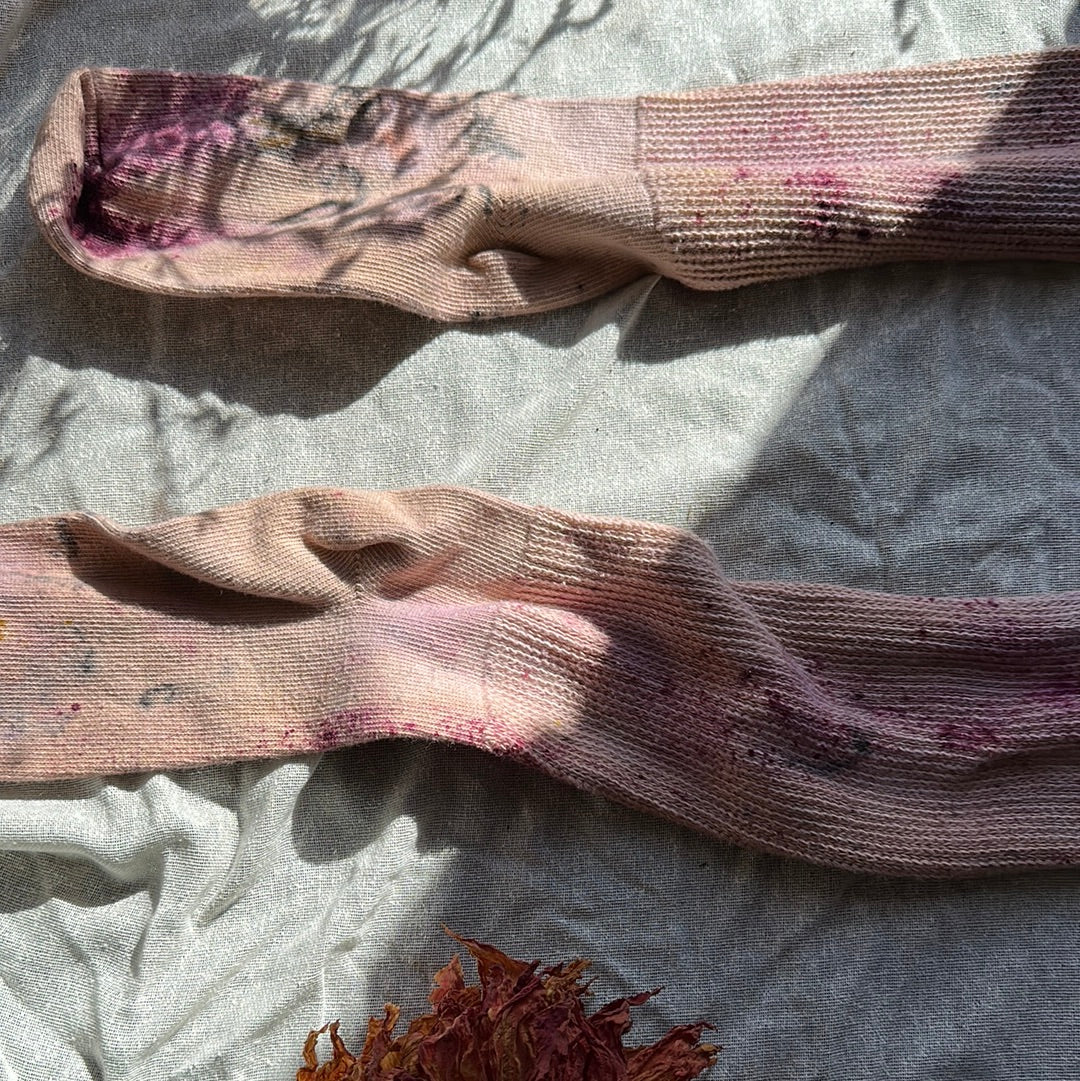 Hand-died with love, intentions, and plant magic. Feel the plant spirits of Sandalwood, Rose, Marigold, Lac, and Iron.