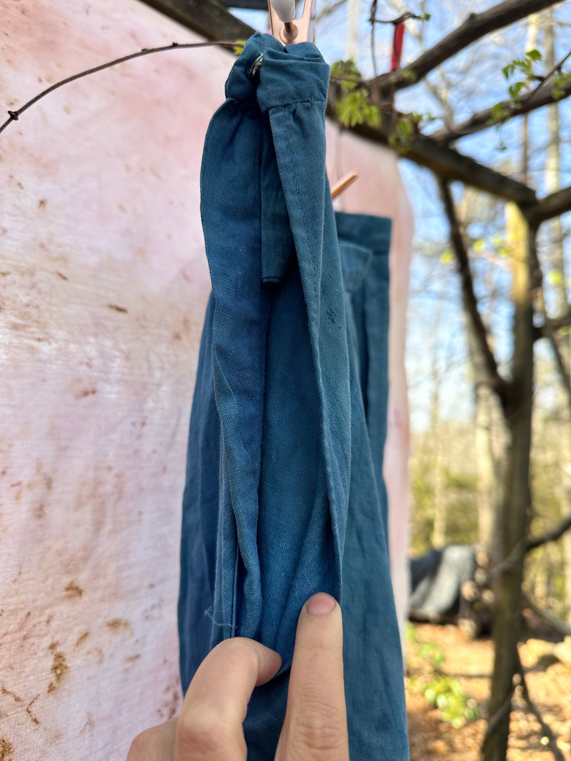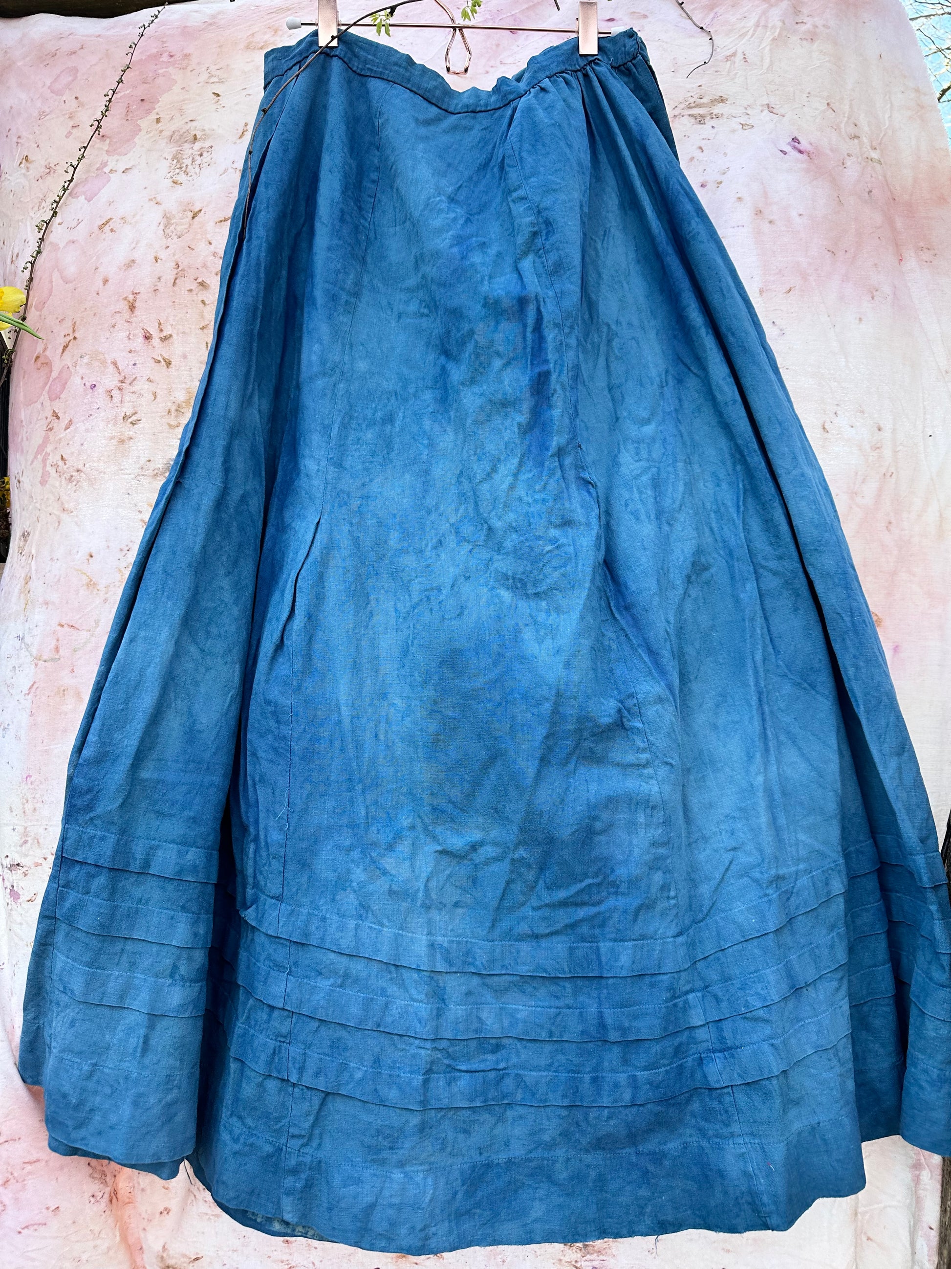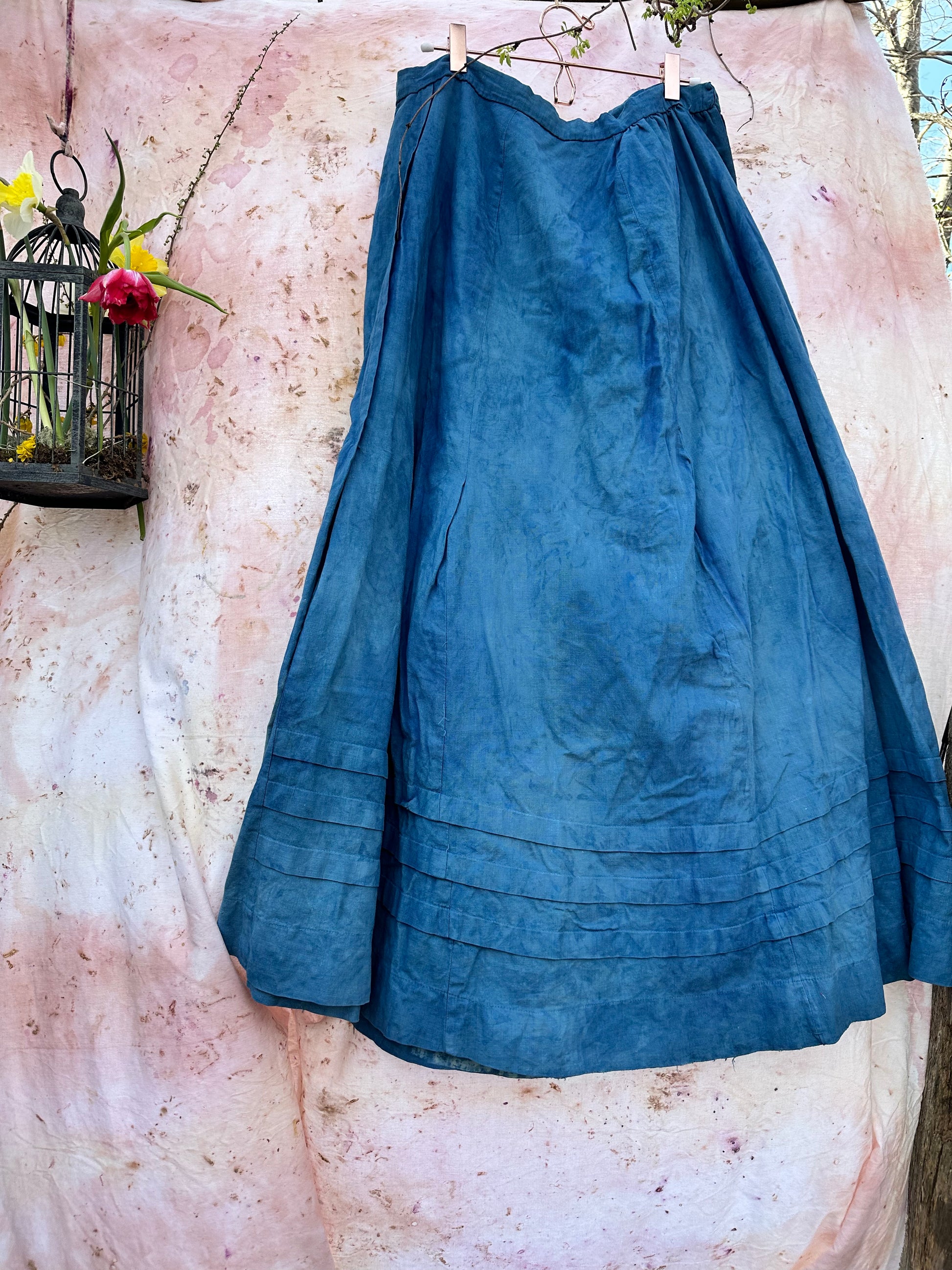 In fantastic condition Cotton, Victorian, skirts buttons on the side With an opening that can be sewed or left to be. Dyed with indigo.