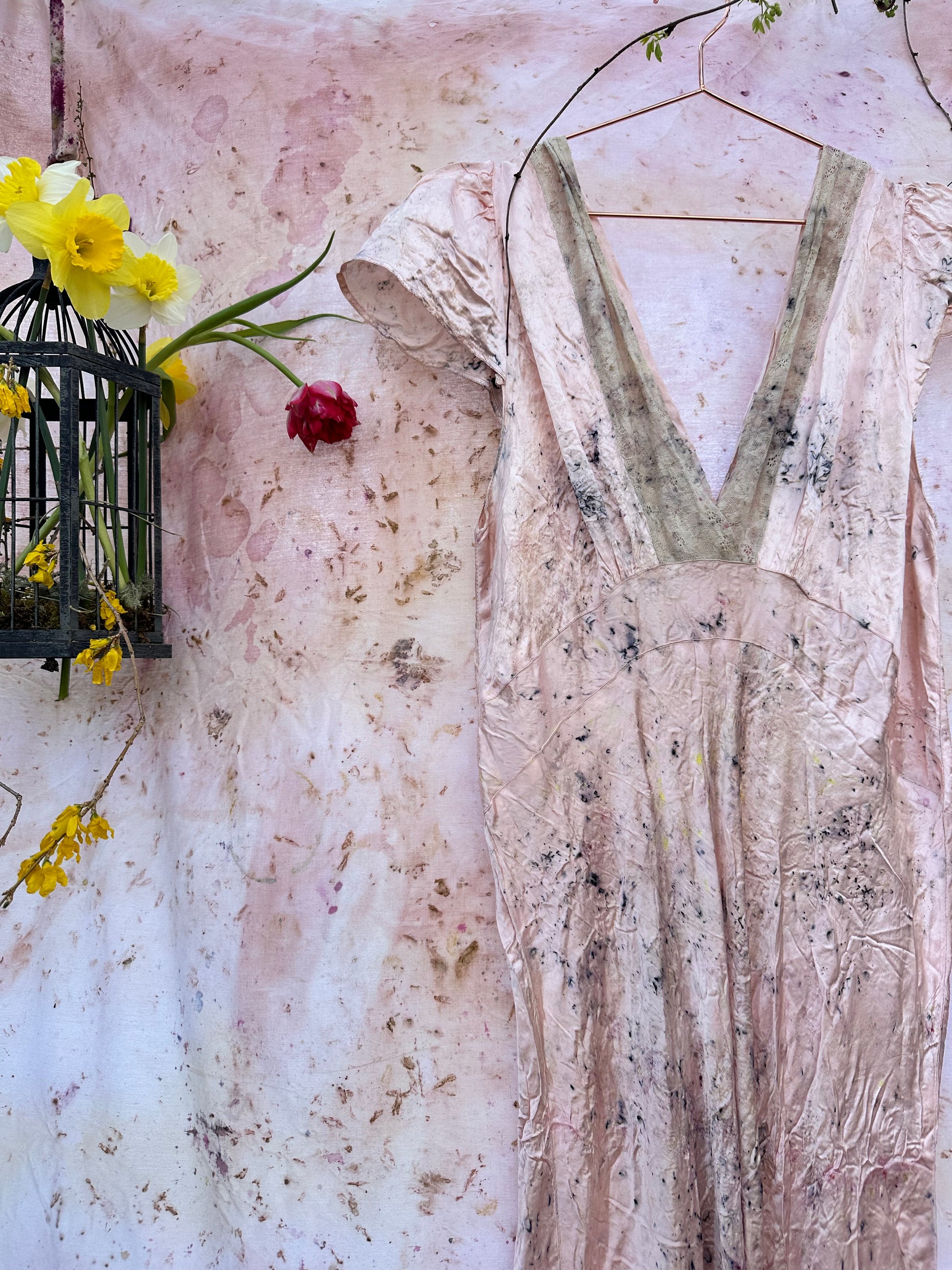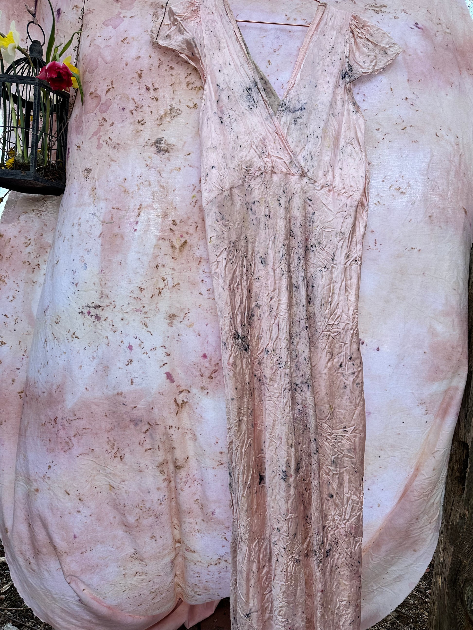 hand dyed with Roses, Dahlia, cochineal, nettle, and iron
