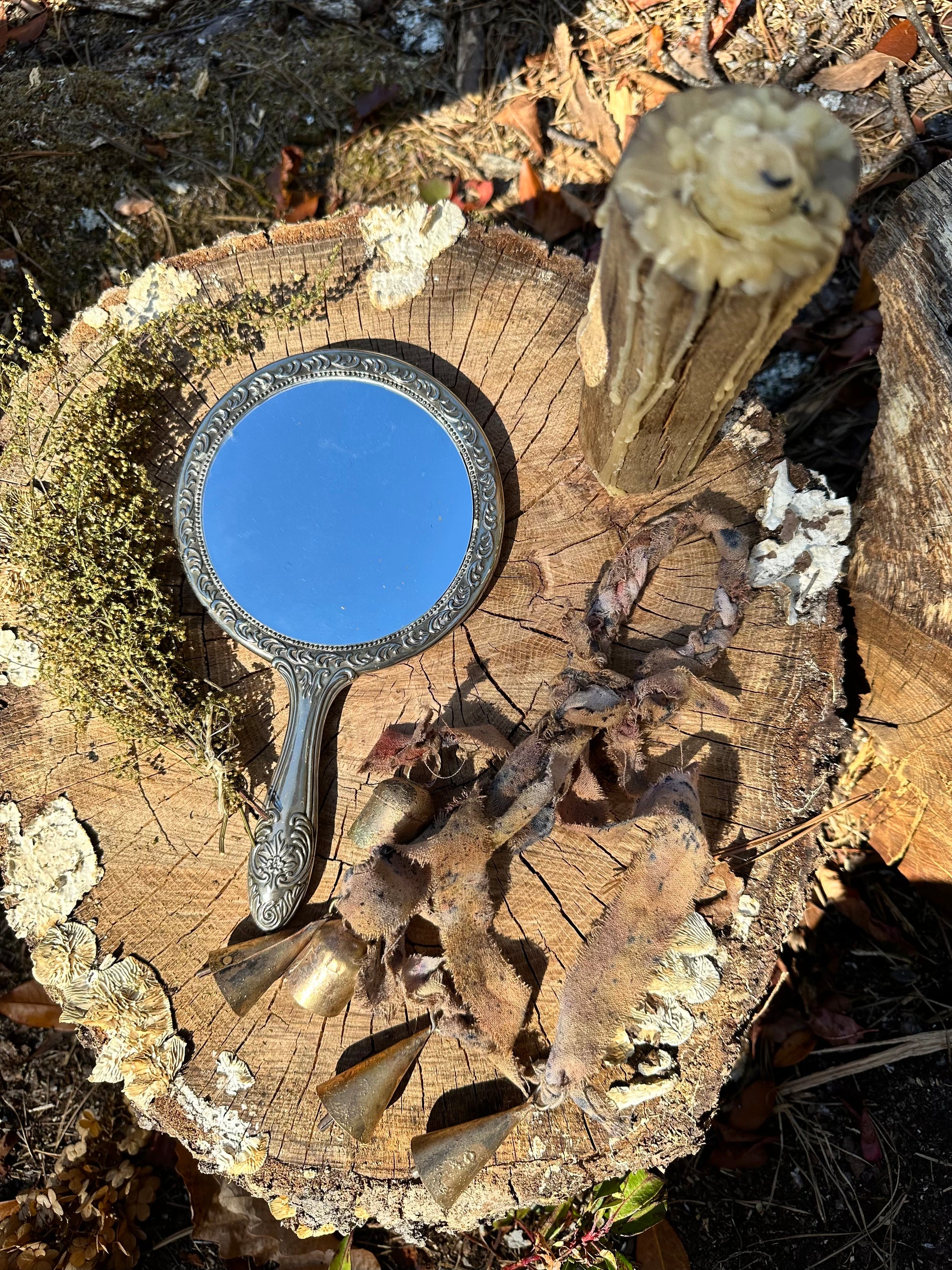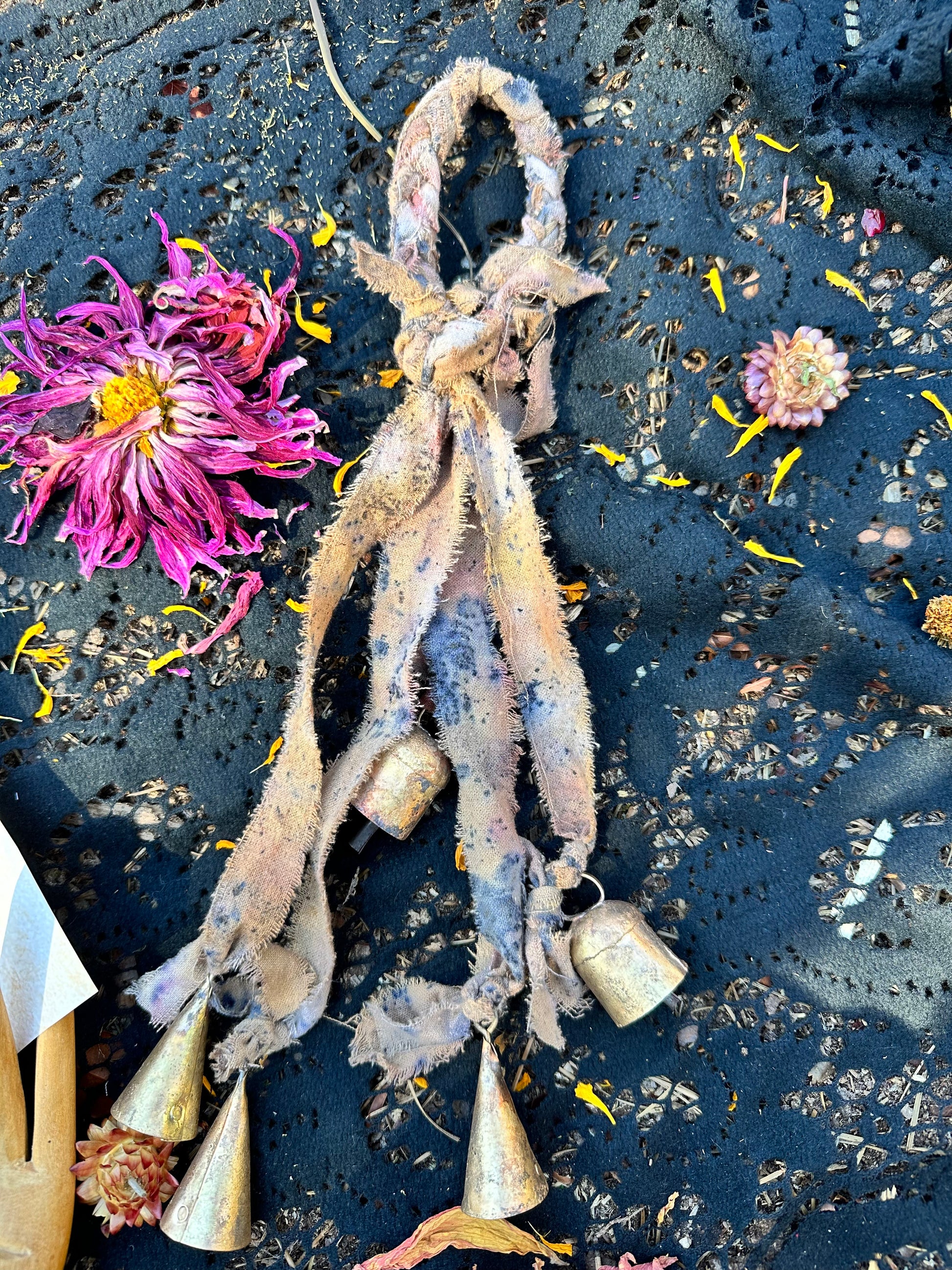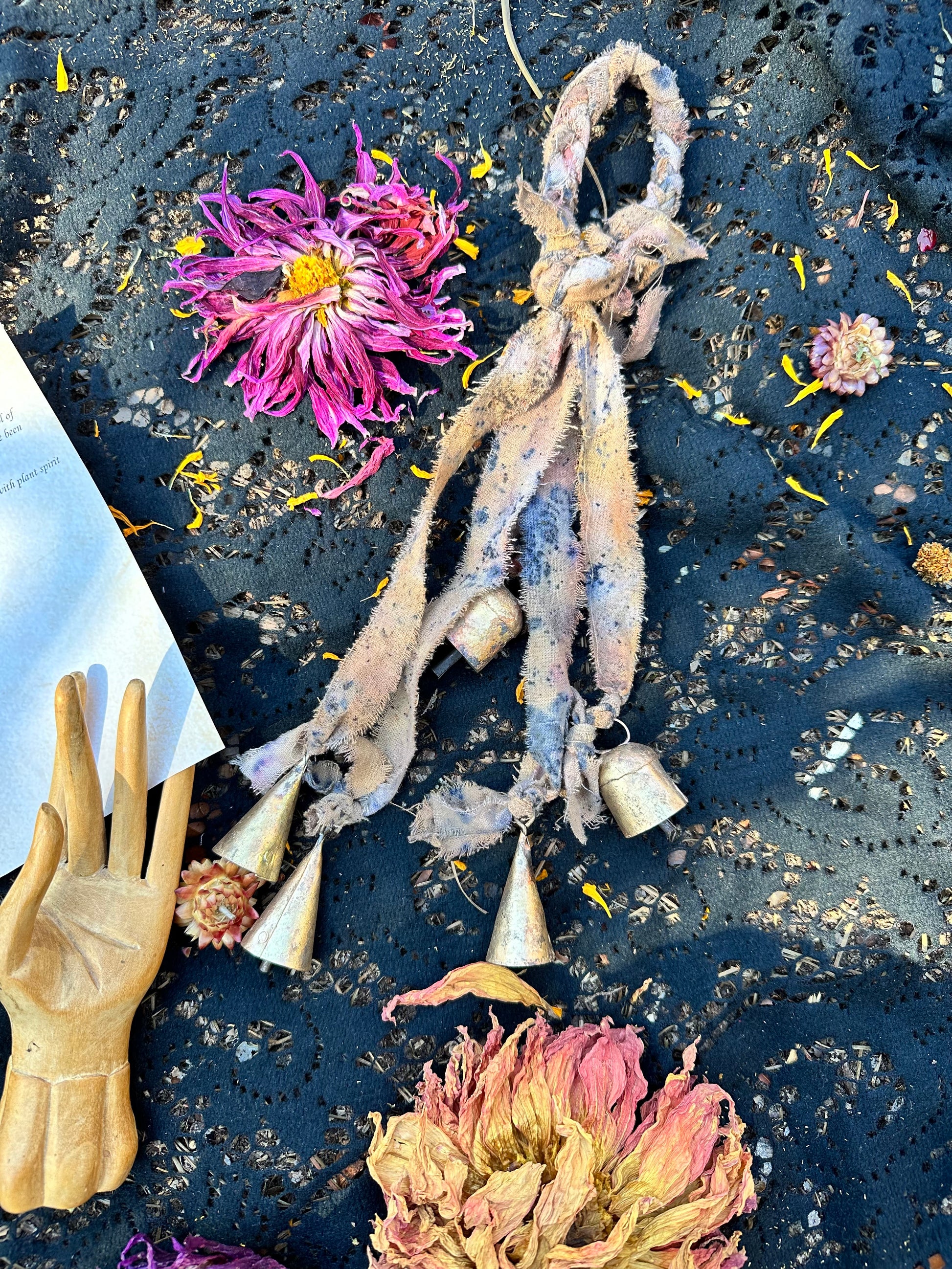 These bills have been crafted in Ritual, working in between the worlds, infusing fabric with plant spirit medicine, and tied with antique brass bells.