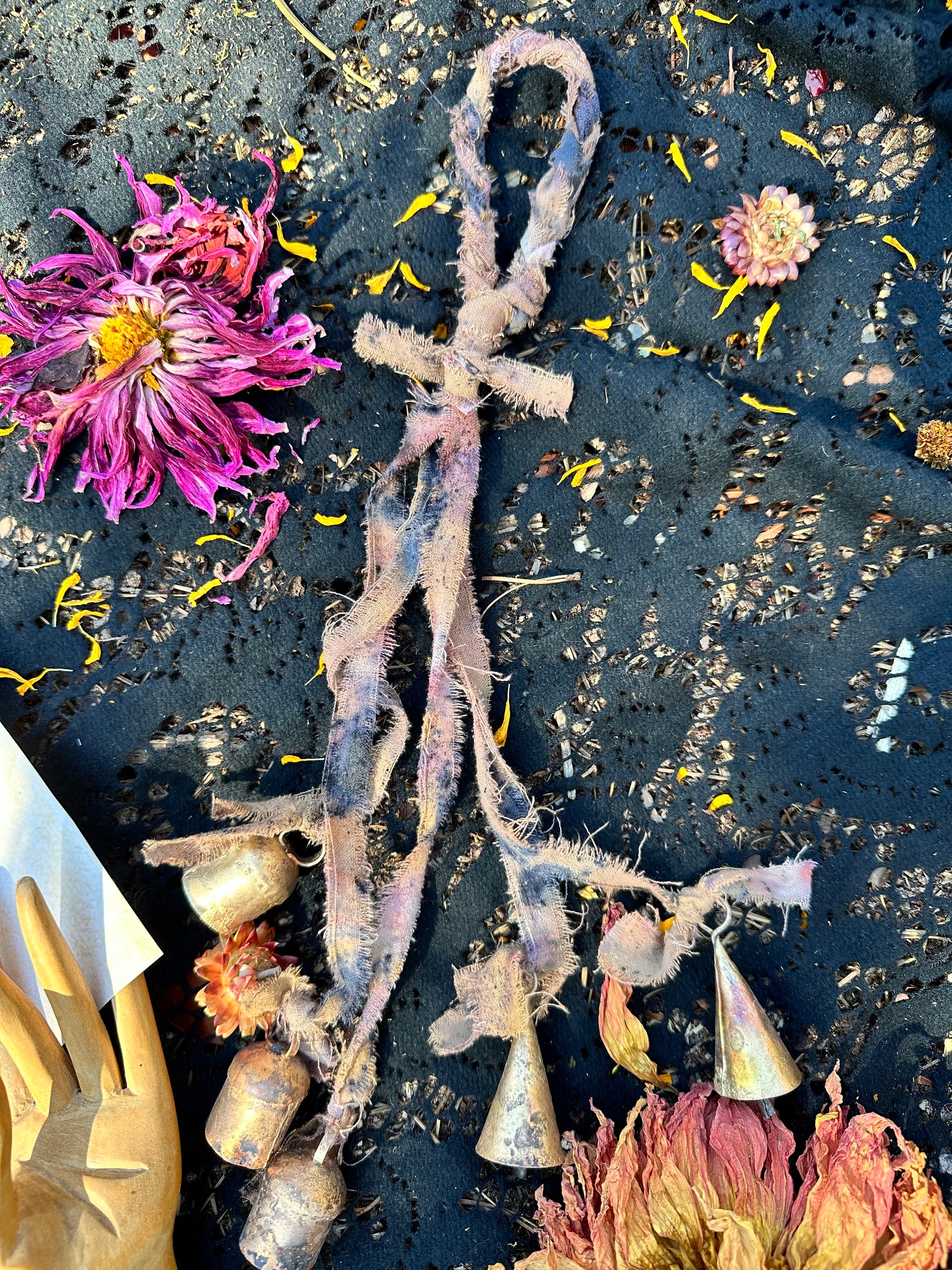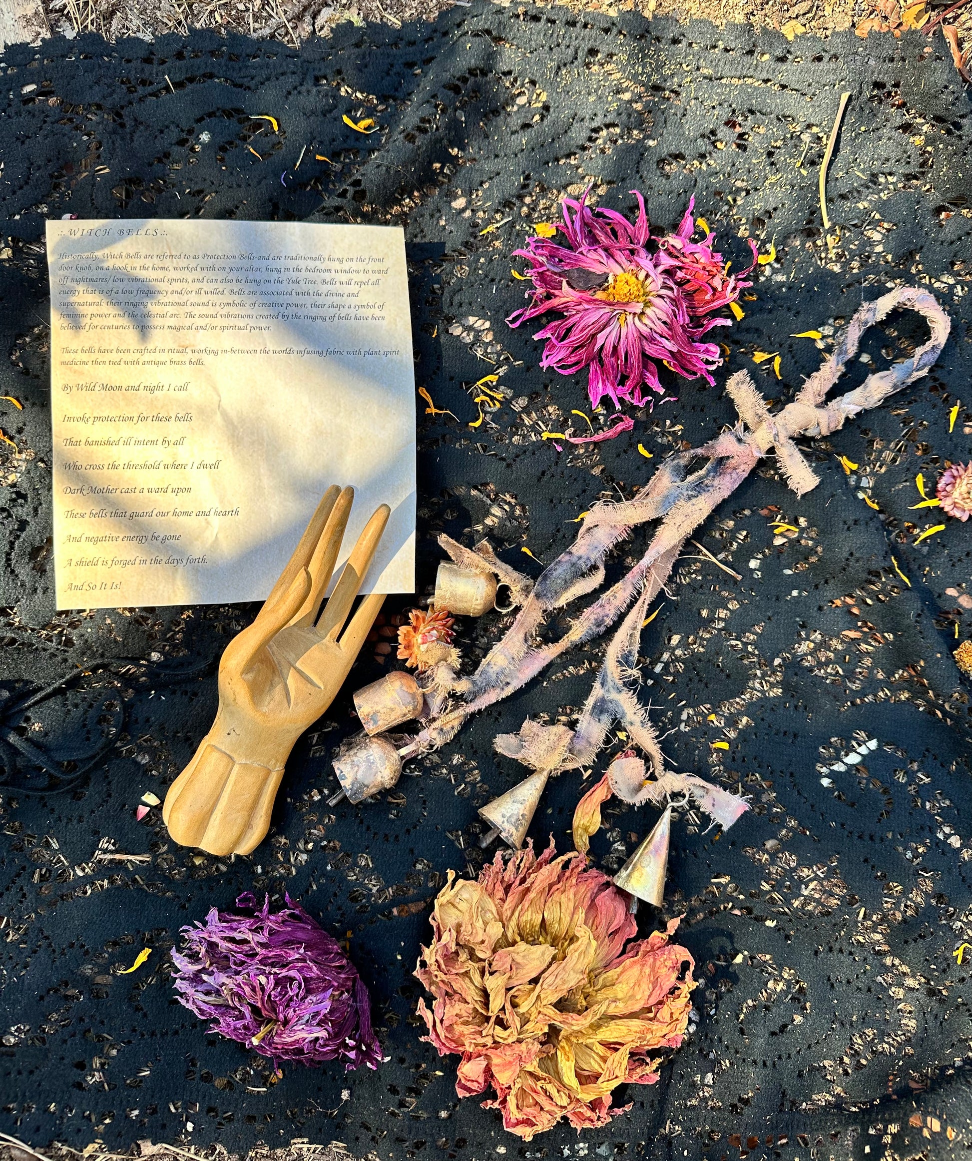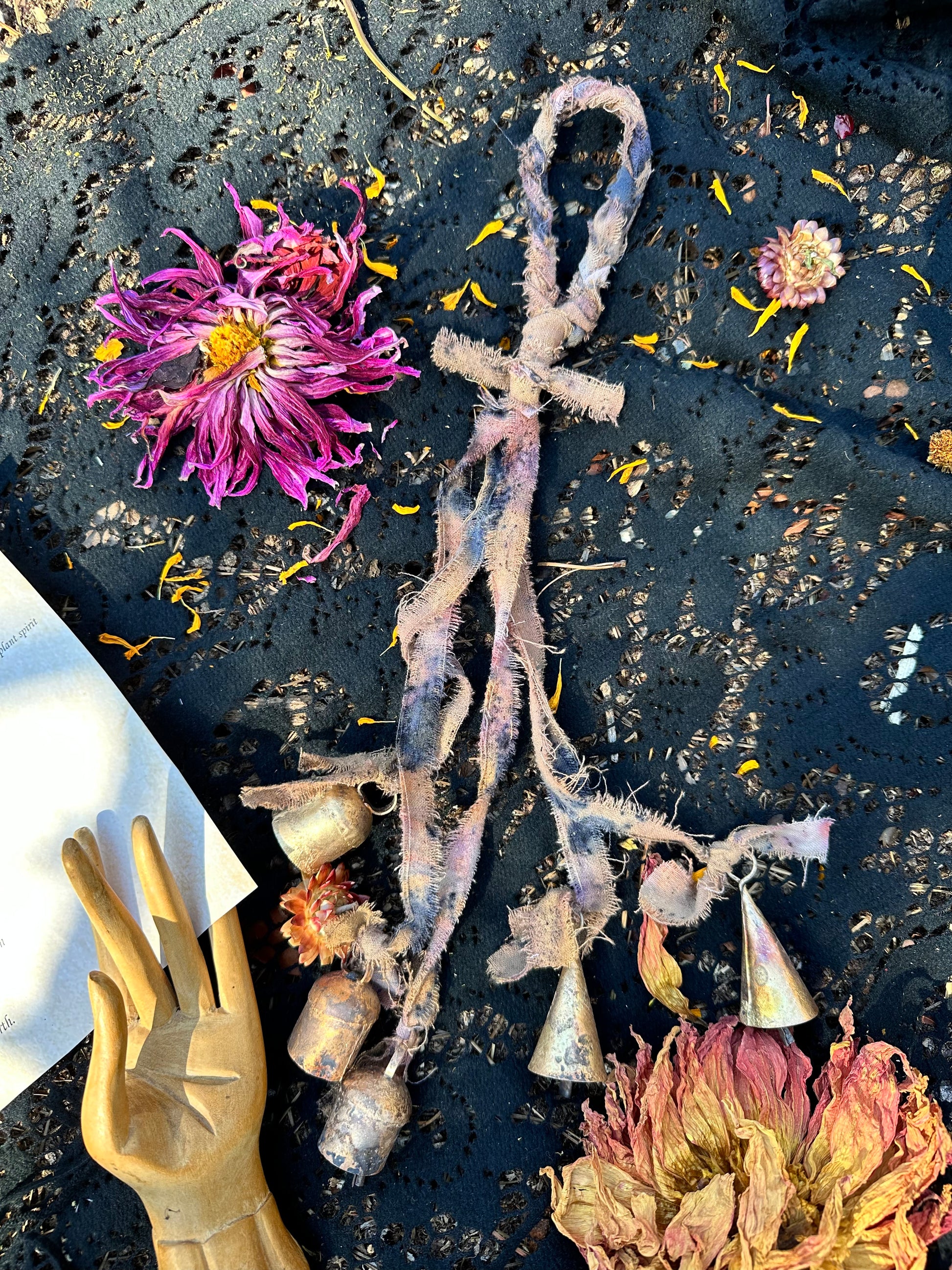 These bills have been crafted in Ritual, working in between the worlds, infusing fabric with plant spirit medicine, and tied with antique brass bells.