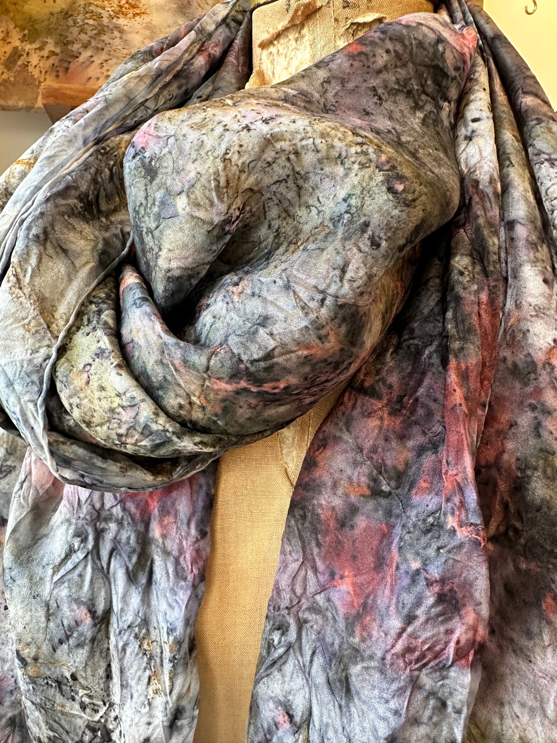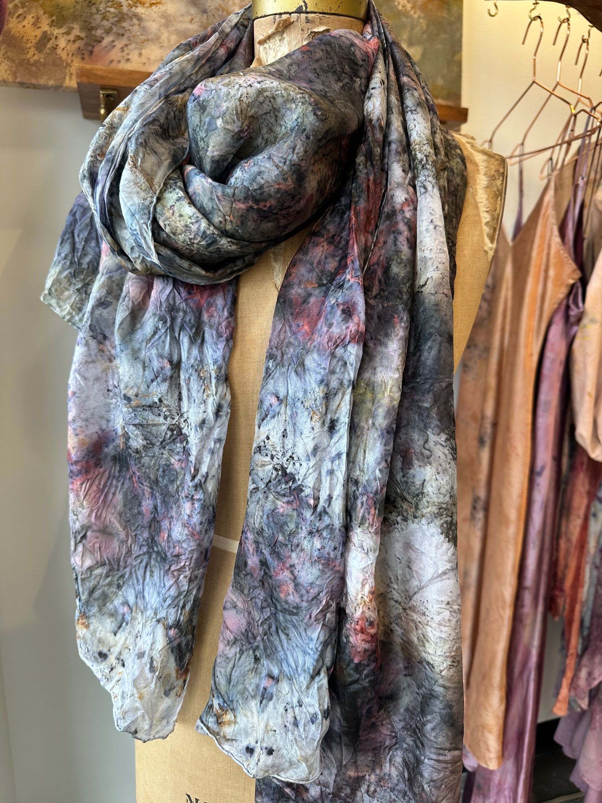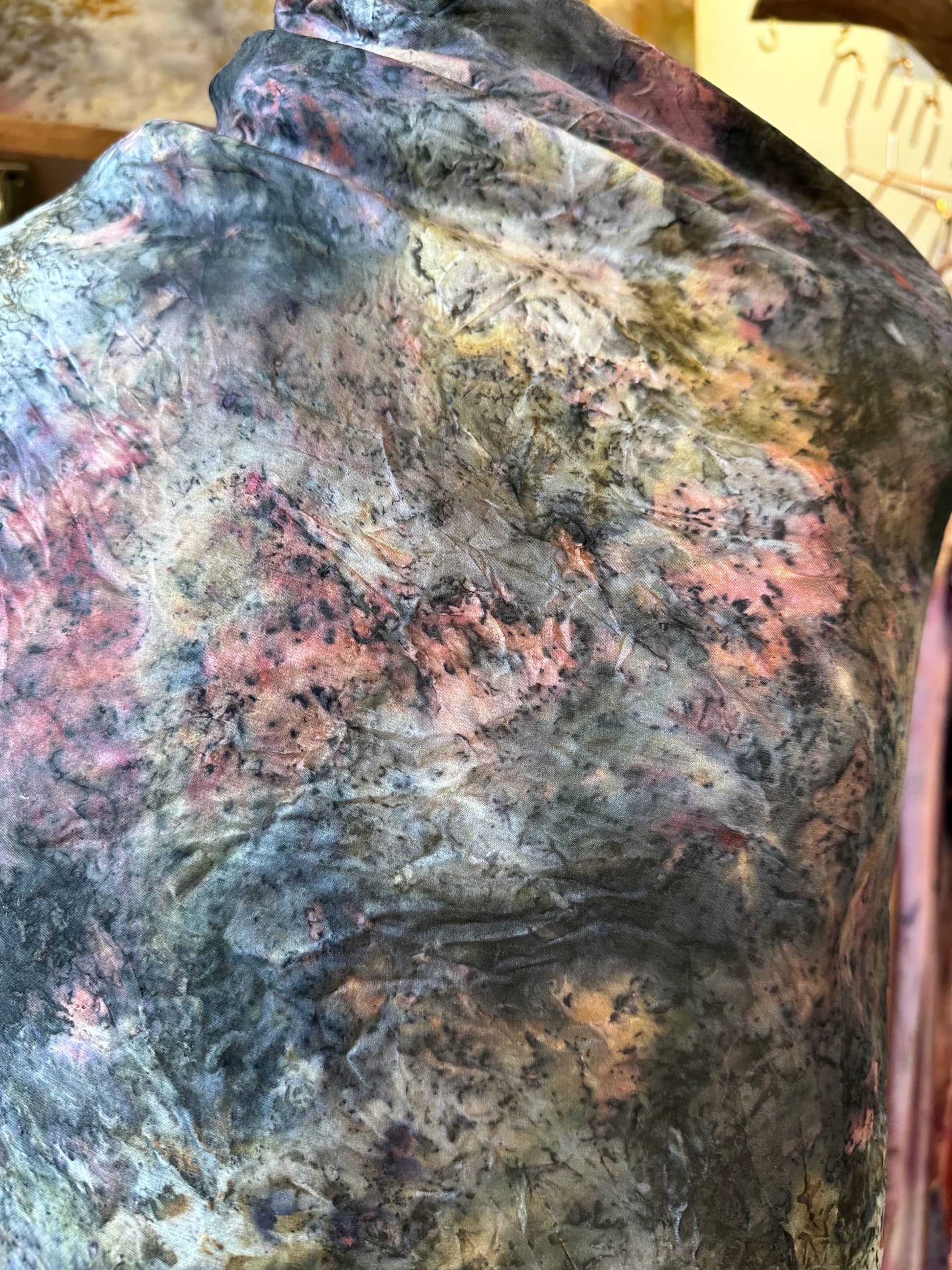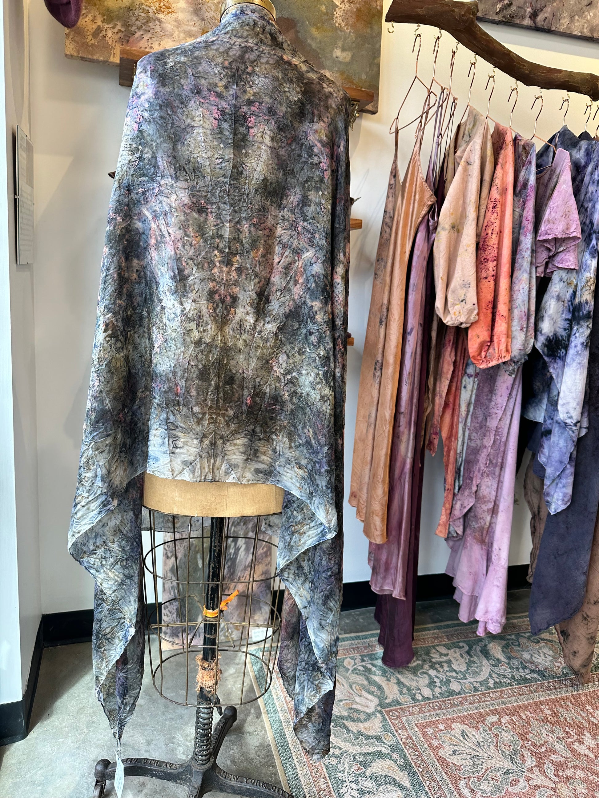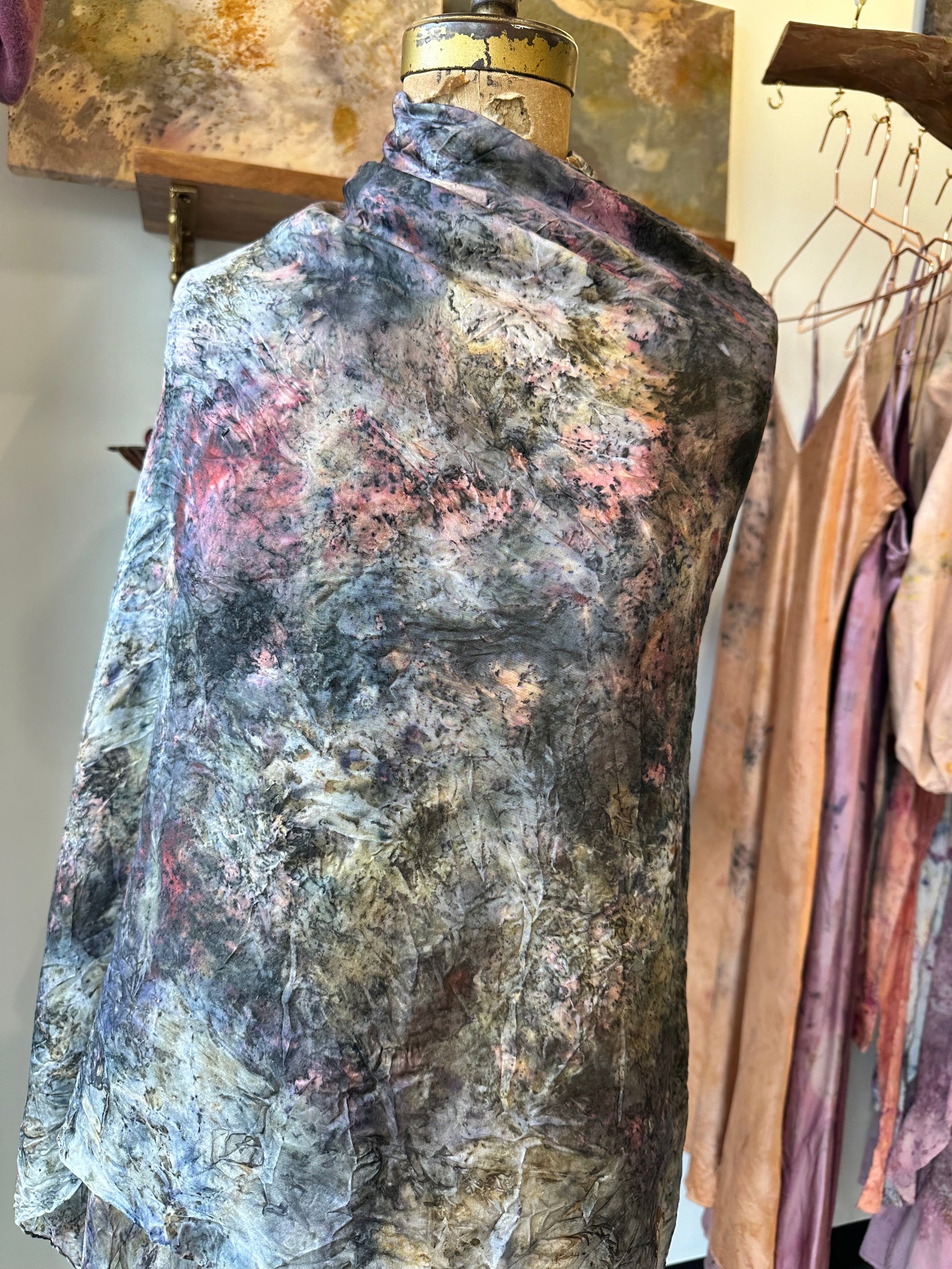 Hand dyed In between the worlds with love, intentions, and plant magic. Feel the plant spirits of alkanet root, Logwood, rose, miracle, Dahlia, and iron.