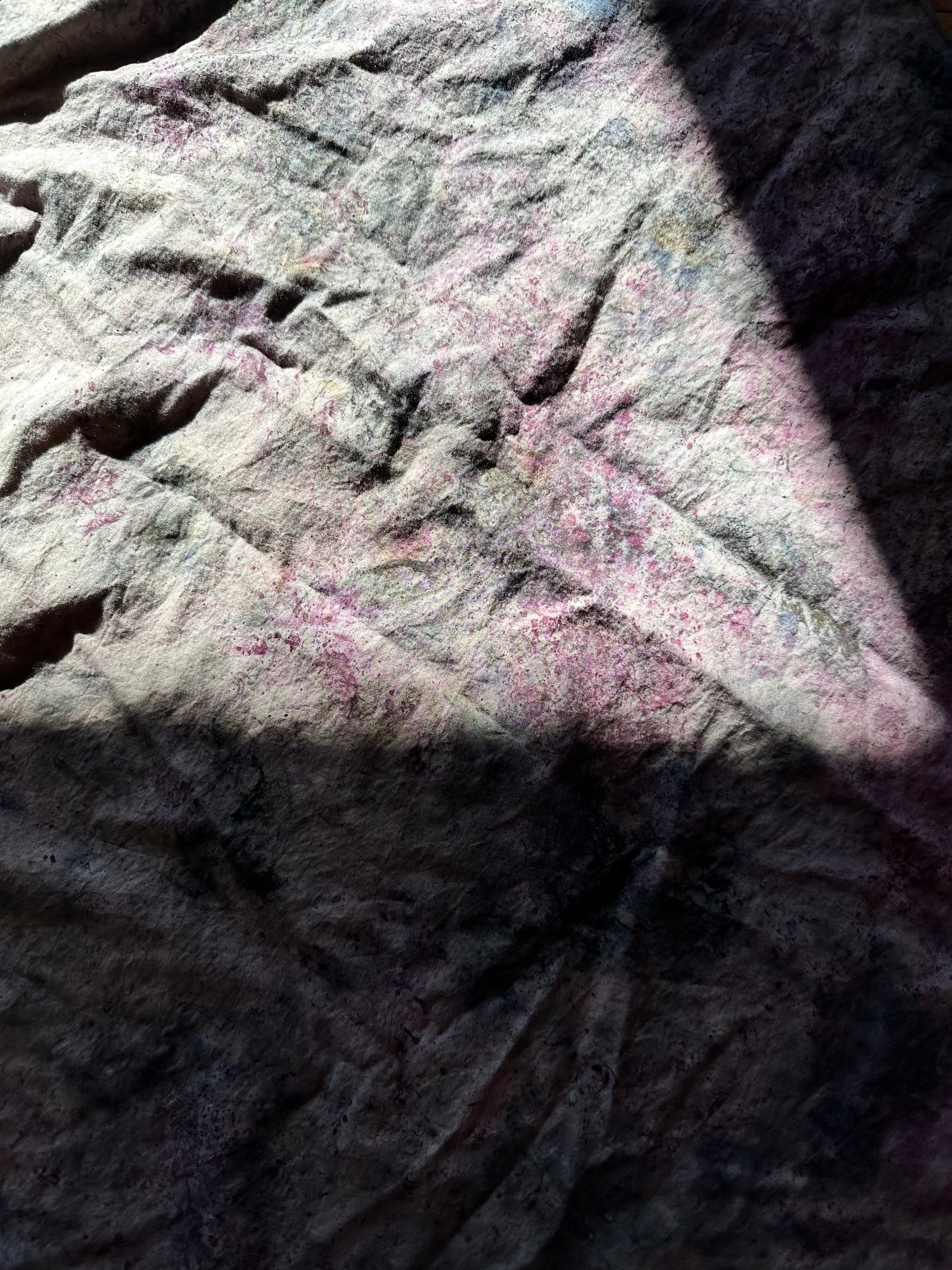 Cotton Yule tree skirt, hand tied in between the worlds with love, intentions, and plant magic. Feel the plant spirits of sequoia, evergreens, fern,Lac, and iron.